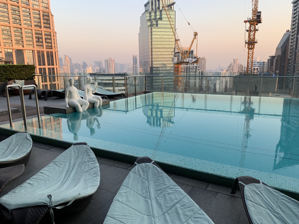 Das Hilton Bangkok Sukhumvit hat auf dem Dach einen wunderschönen kleinen Pool, inkl. einiger Liegen. Besonders beim Sonnenaufgang hatte man hier einen tollen Blick über Bangkok.