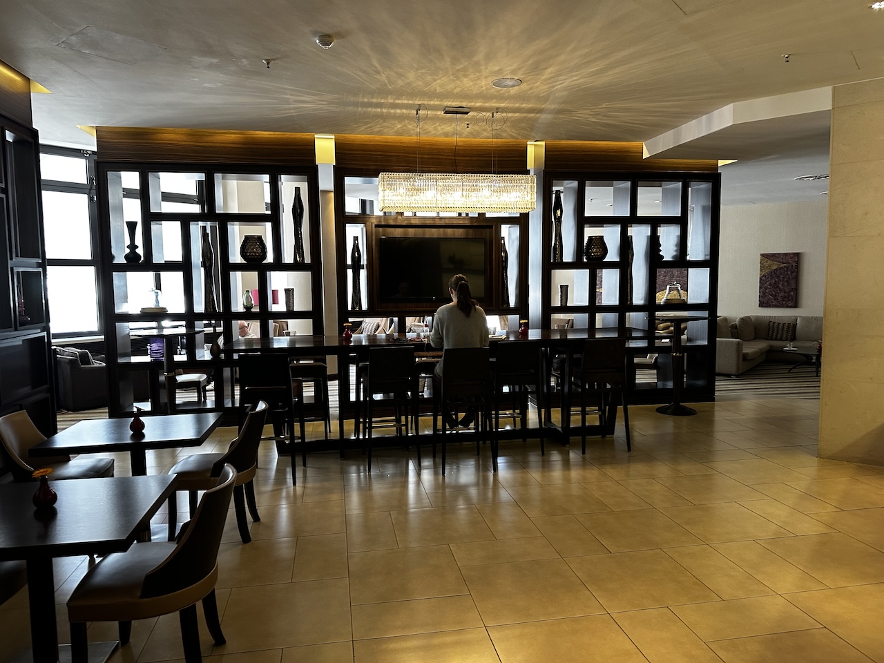 Die Lounge ist im Erdgeschoss, um diese betreten zu können bekommt man eine gesonderte Schlüsselkarte. Zugangsberechtigt sind alle die eine Executive Zimmer gebucht haben, darauf upgegradet wurden oder den Honors Diamond Status haben.