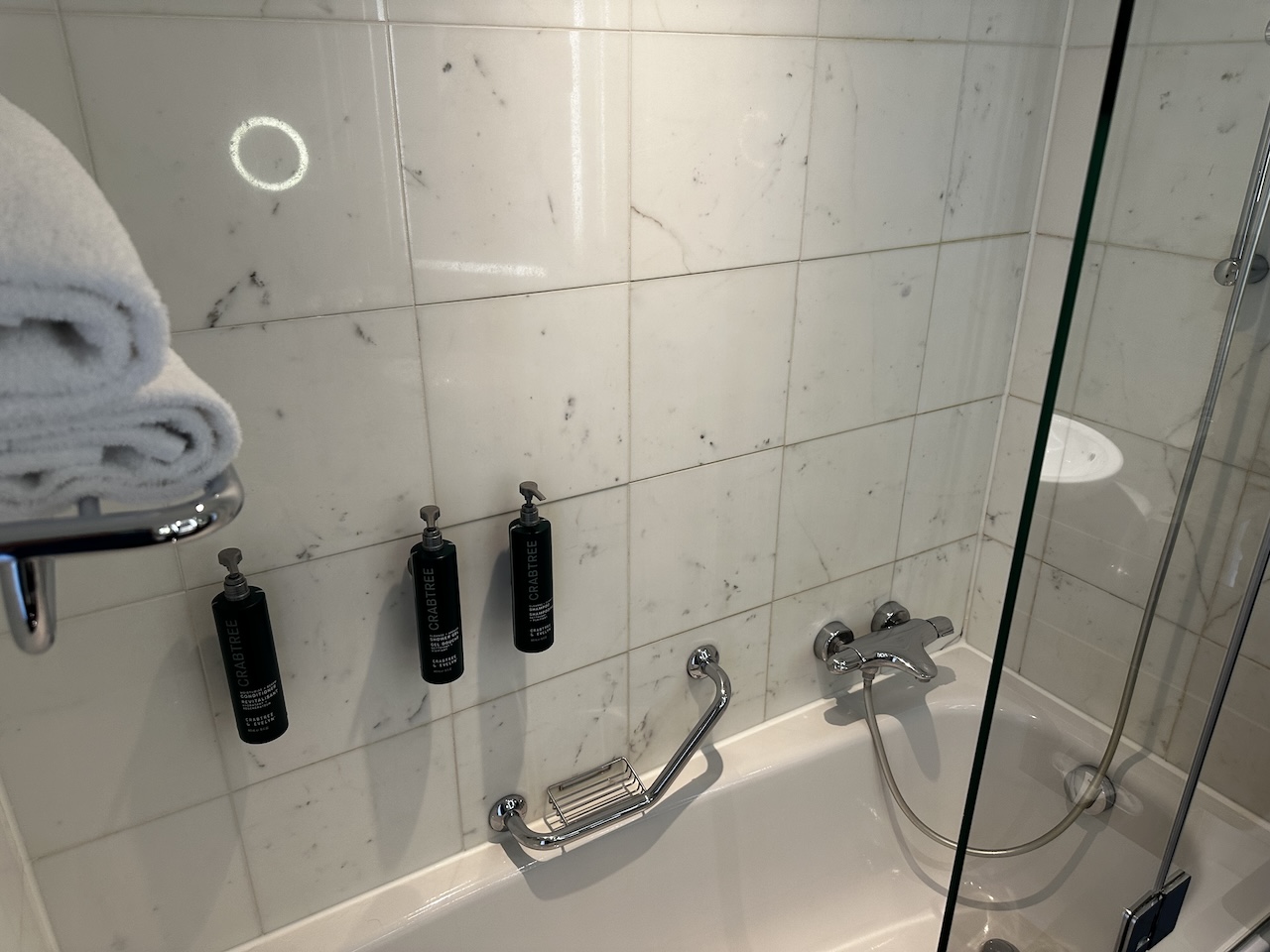 Das Bad war etwas eng, hier kann man beim genaueren Hinsehen das Alter des Hotels wohl am Besten erkennen.