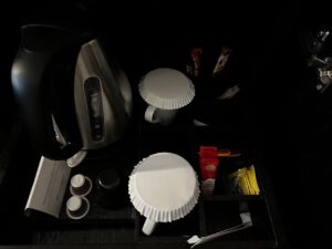 Die Räume sind mit den üblichen Dingen ausgestattet, wir hatten auch eine Espressomaschine, diese ließ sich jedoch nicht einschalten.