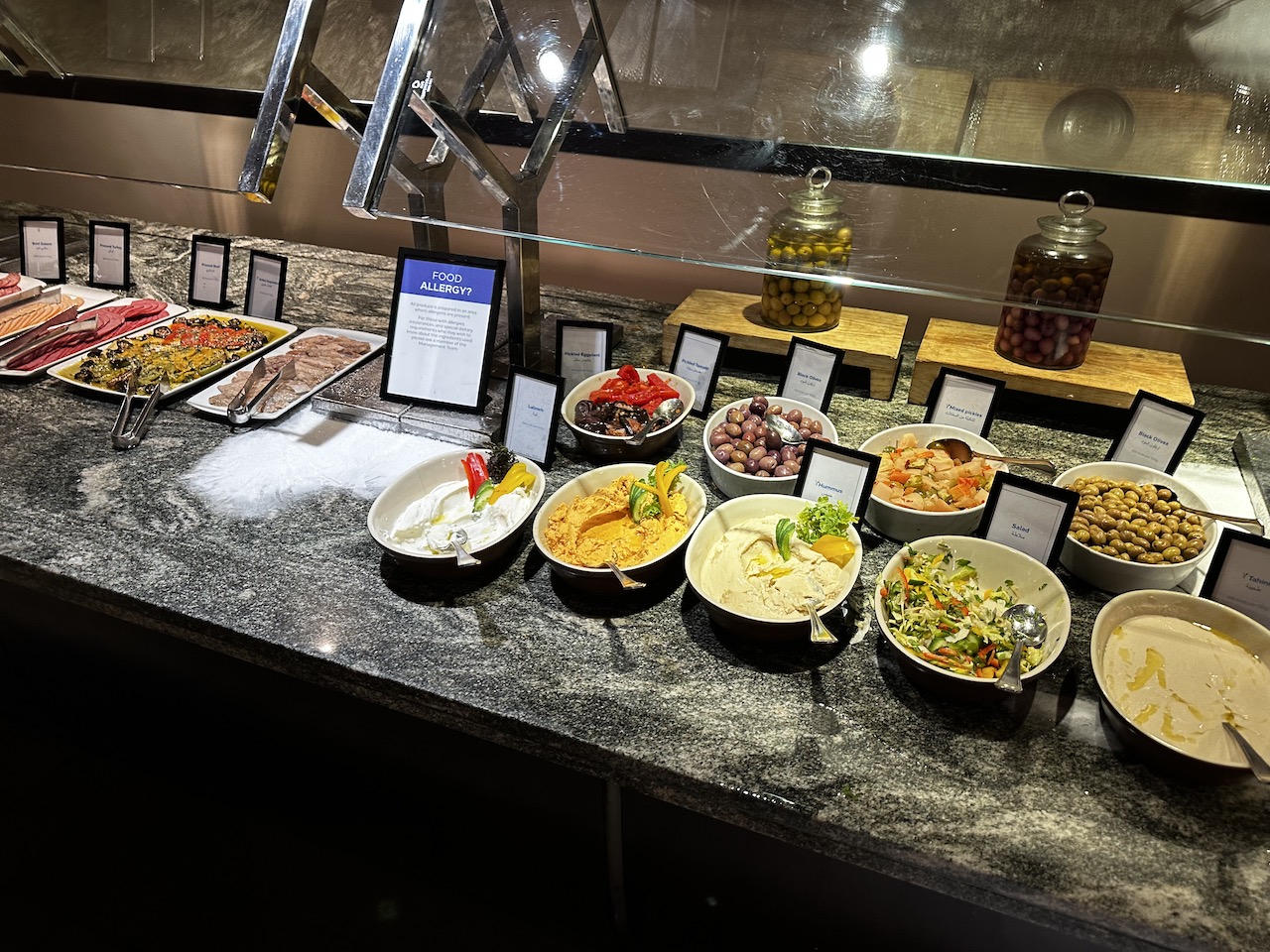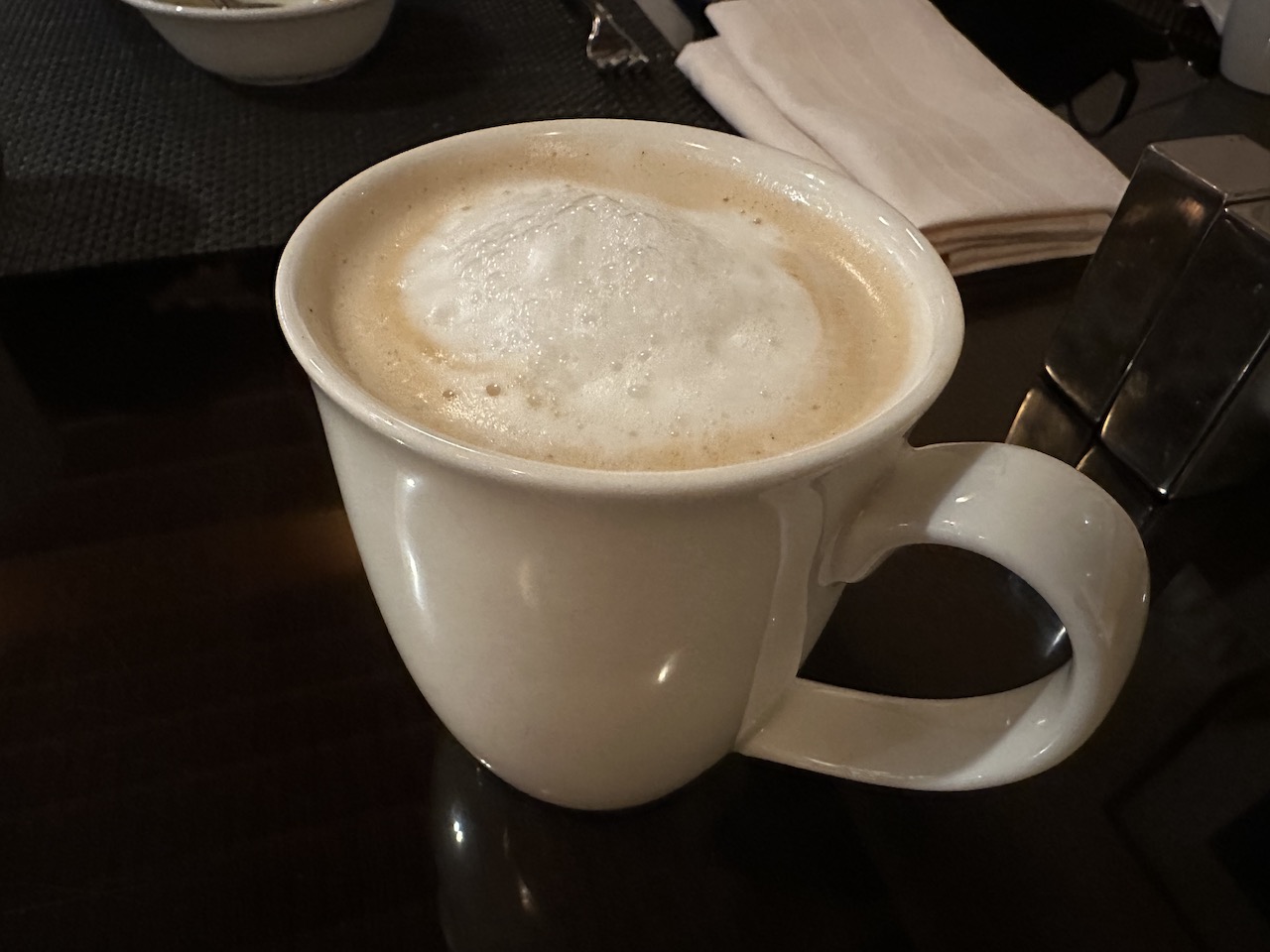 Wir waren tagsüber für einen Kaffee dort, das weitere Angebot hielt sich ziemlich in Grenzen. Immerhin hat uns eine Mitarbeiterin gesehen und uns einen handgemachten Cappuccino von der Bar angeboten – eine sehr nette und aufmerksame Geste.