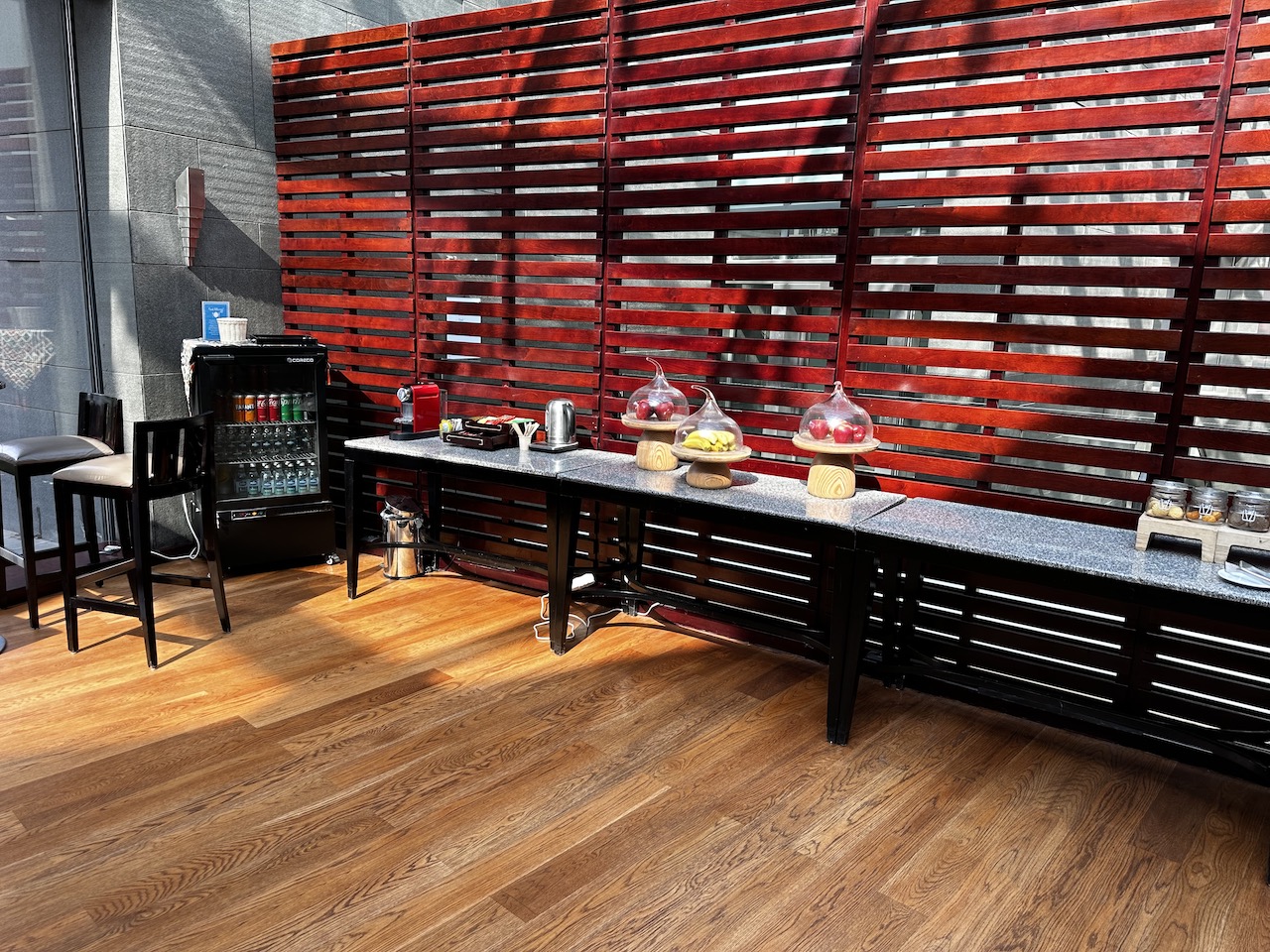Ich blieb stur und teilte mit, in der Lobby auf ein freiwerdendes Zimmer zu warten. Wir gingen an die Bar und machten es uns bequem, der Mitarbeiter lud uns dort auf einen Willkommens-Saft ein und stellte eine Platte mit kalten Snacks dazu. Um 6 Uhr startete das Frühstücksbuffet, dieses durften wir nutzen und in netter Atmosphäre bis zur Freigabe des Zimmers warten.