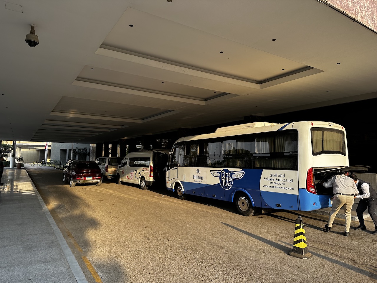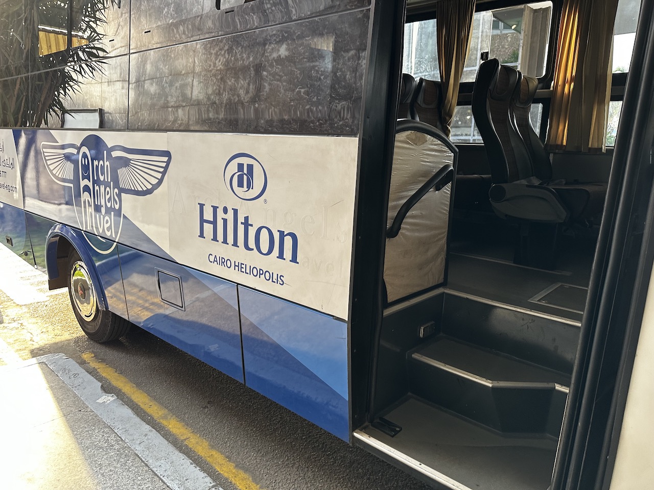 Das Hotel ist nur 10 Minuten vom Flughafen Kairo entfernt, laut Homepage wird auch ein Shuttle angeboten. Nach der Reservierung auf der Hilton Website habe ich diesbezüglich eine Mail an das Hotel geschickt und die Zeiten angefragt. Hier wurde ich darauf hingewiesen, dass das Tageszimmer erst ab 10 Uhr bezugsfertig sei. Details zum Fahrservice blieben auch auf Nachfrage aus.