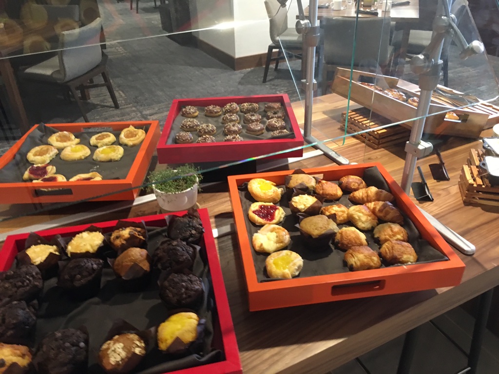 Das Frühstück im Hilton Cleveland ist für mich ein absolutes Highlight. In den USA sind Frühstücksbuffets meist von nicht wirklich überwältigender Qualität. Im Hilton Cleveland serviert man allerdings ein Frühstück, welches absolut auf europäischem Niveau ist. An einem kleinen Buffet wurde eine Auswahl an Brot, Brötchen, süßen Teilchen, Joghurt, frischem Obst, Lachs und Käse angeboten.