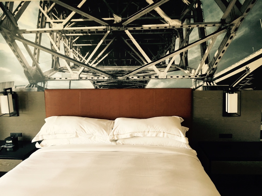 Zentrum des modern ausgestatteten Zimmers war das sehr bequeme Hilton Bett. Schön fand ich im Zimmer auch die Bilder an der Wand, welche an das „alte“ Cleveland erinnerten.