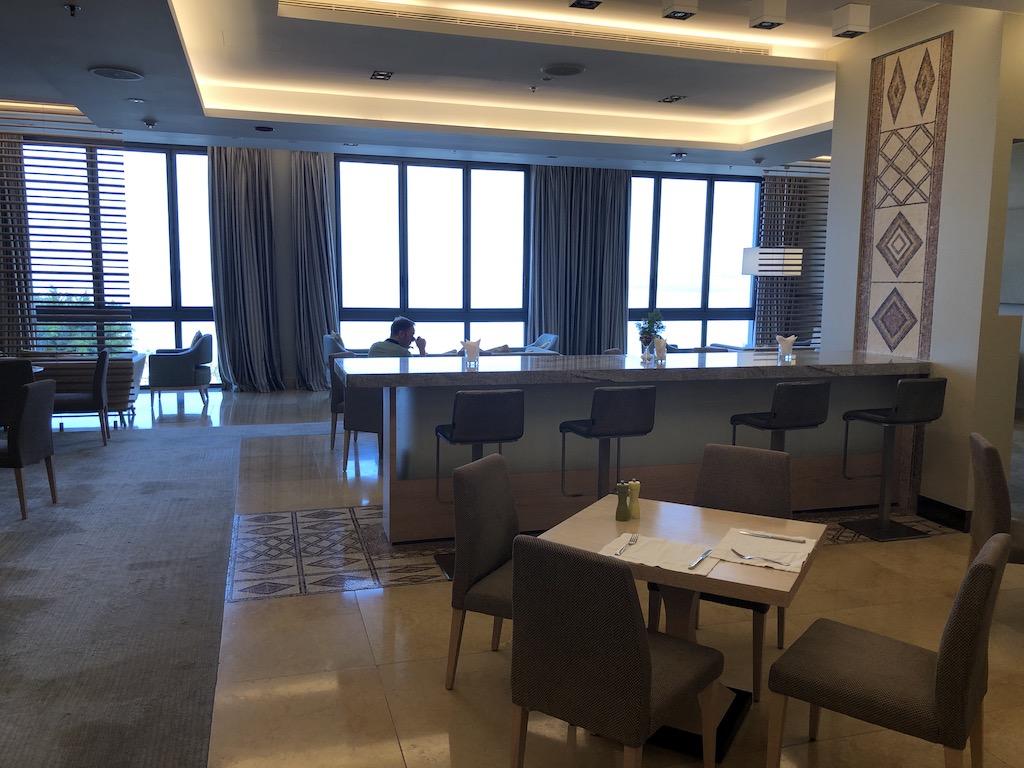 Die Lounge war ein absoluter Mehrwert, da wie bereits erwähnt die Getränkepreise im restlichen Hotel einfach in keinem Verhältnis standen. Als Häppchen gab es arabisches Brot, Hummus, Sandwiches und Kuchen.