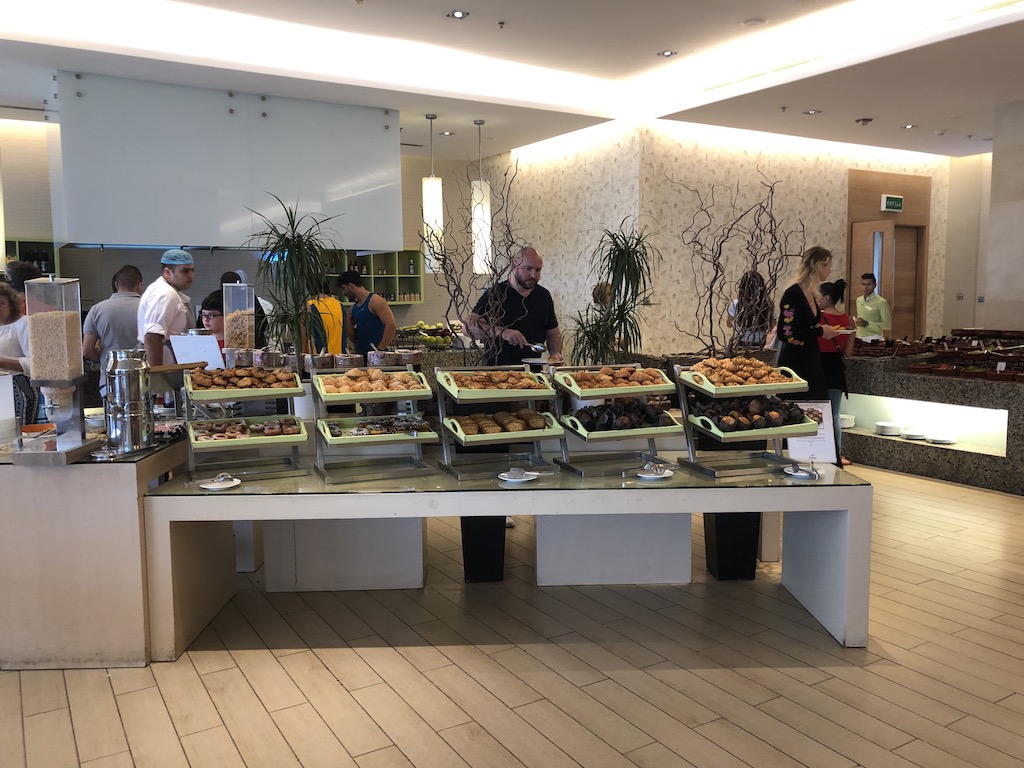 Wir haben bei unserem Aufenthalt lediglich das libanesische Restaurant besucht und waren täglich frühstücken. Letzteres war so beliebt, dass bei fast voller Auslastung des Hotels die Qualität auf der Strecke blieb. So gab es nur einen einzigen Kaffeevollautomaten der etwa eine Minute für jedes Heißgetränk benötigte. Oft bildeten sich im Restaurant Schlangen von zehn Personen und mehr, die lange auf das schwarze Gold warten mussten. Das Personal war zu Stoßzeiten regelrecht überfordert mit dem Ansturm, unter der Woche war es dann ruhig und entspannt.