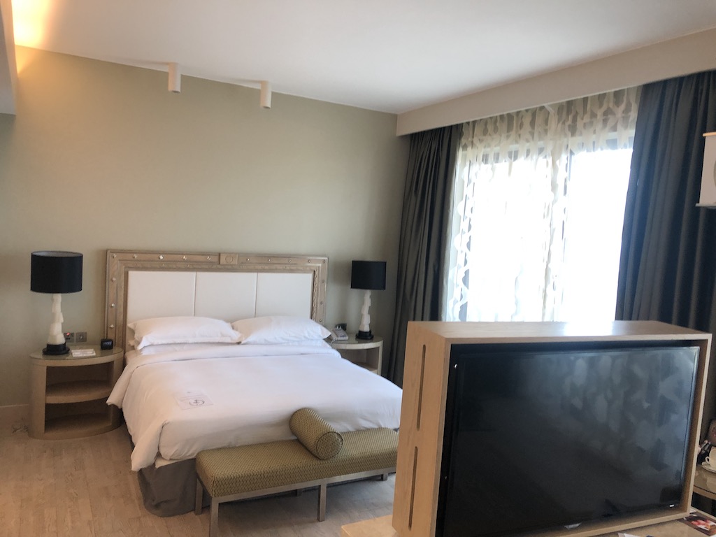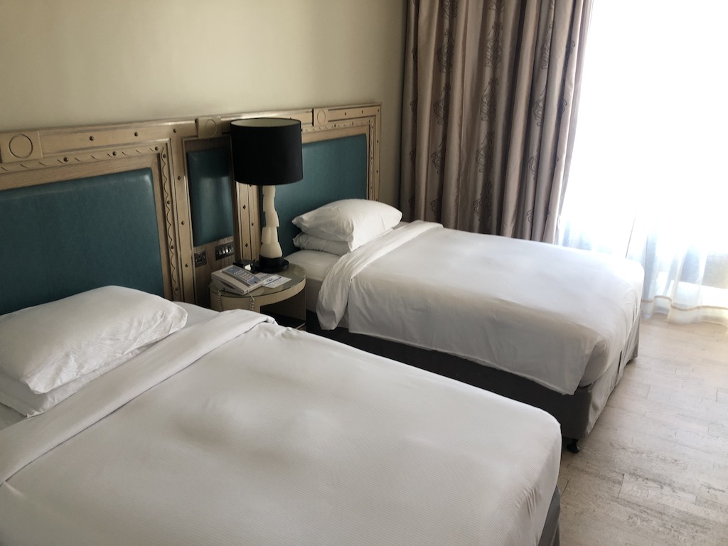 Neben regulären Zimmern mit Twin oder King Betten, gibt es auch welche mit Meerblick und Terrasse sowie Executive Zimmer mit Loungezugang. Danach folgen schon Suiten in 3 verschiedenen Kategorien. Wir erhielten ein Twin-Bed Zimmer mit Balkon. Der Meerblick war also das Upgrade im Vergleich zu dem gebuchten regulären Zimmer.