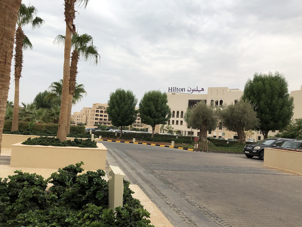 Das Hotel ist in etwa einer Stunde Autofahrt vom Flughafen Amman erreichbar. Wir sind mit dem Mietwagen aus dem Süden zum Hilton gefahren. Dort liegt die zweitgrösste Stadt Jordaniens direkt am Roten Meer. Die Fahrt aus Aqaba dauert etwa 3 Stunden, die Straßenverhältnisse sind mittelmäßig bis gut. Der Verkehr ist zwar manchmal etwas chaotisch, aber auf jeden Fall zu meistern!