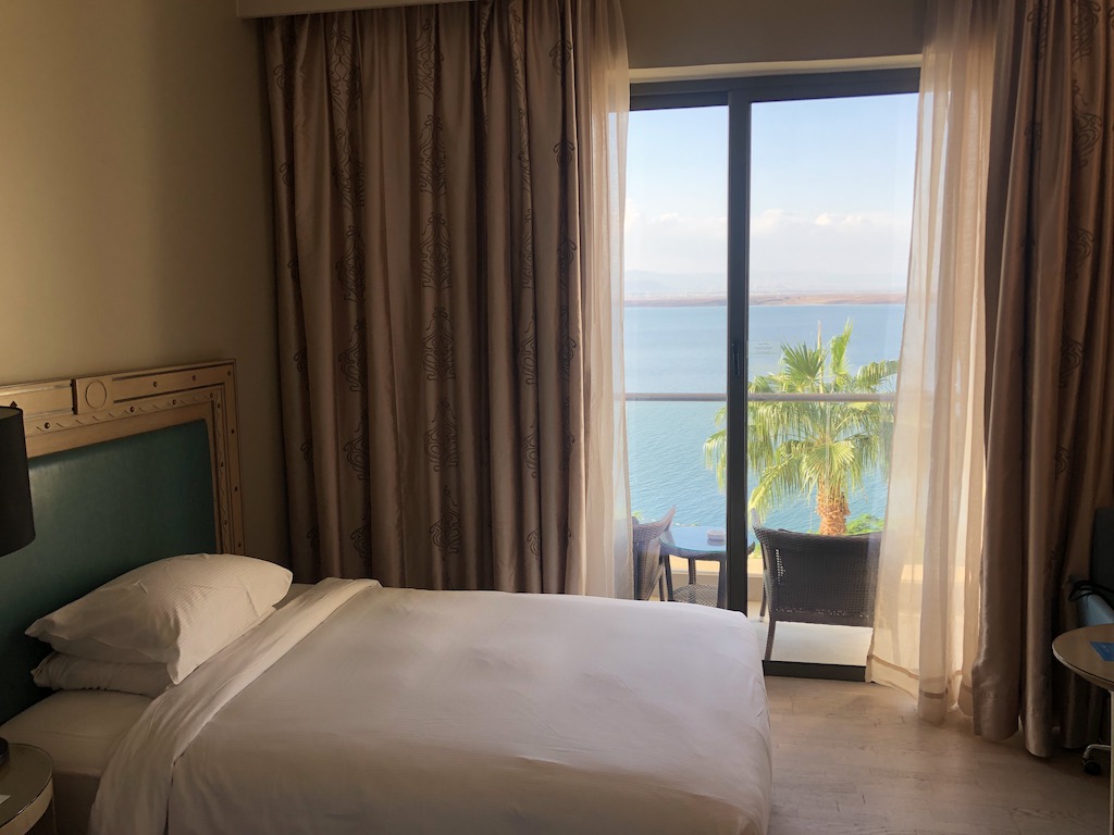 Das Tote Meer liegt etwa 400 Meter unter dem Meeresspiegel, es ist der tiefste Punkt der Erde, zumindest über der Wasseroberfläche. An der Zufahrt des Hotels wird man nach dem Namen gefragt und die Reservierung wird vom Pagen überprüft. Zu dem Komplex gehört auch ein riesiges Convention Center welches ebenfalls von Hilton betrieben wird. Das Parken ist für alle Gäste kostenfrei.