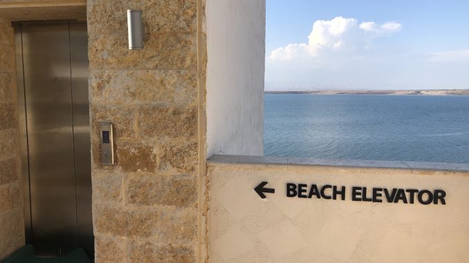 Am Pool ist ein weiteres Restaurant mit Terrasse, einige Stufen weiter unten dann der Zugang zum Toten Meer. Alternativ gab es den Beach-Elevator um dorthin zu gelangen. Eine weitere Bar ist dann direkt am Strand, Mitarbeiter standen als Ansprechpartner zum Meer zur Verfügung und waren sogar beim Einreiben mit Schlamm behilflich.