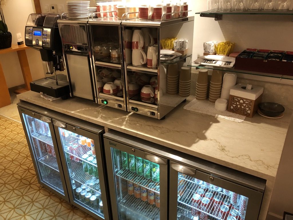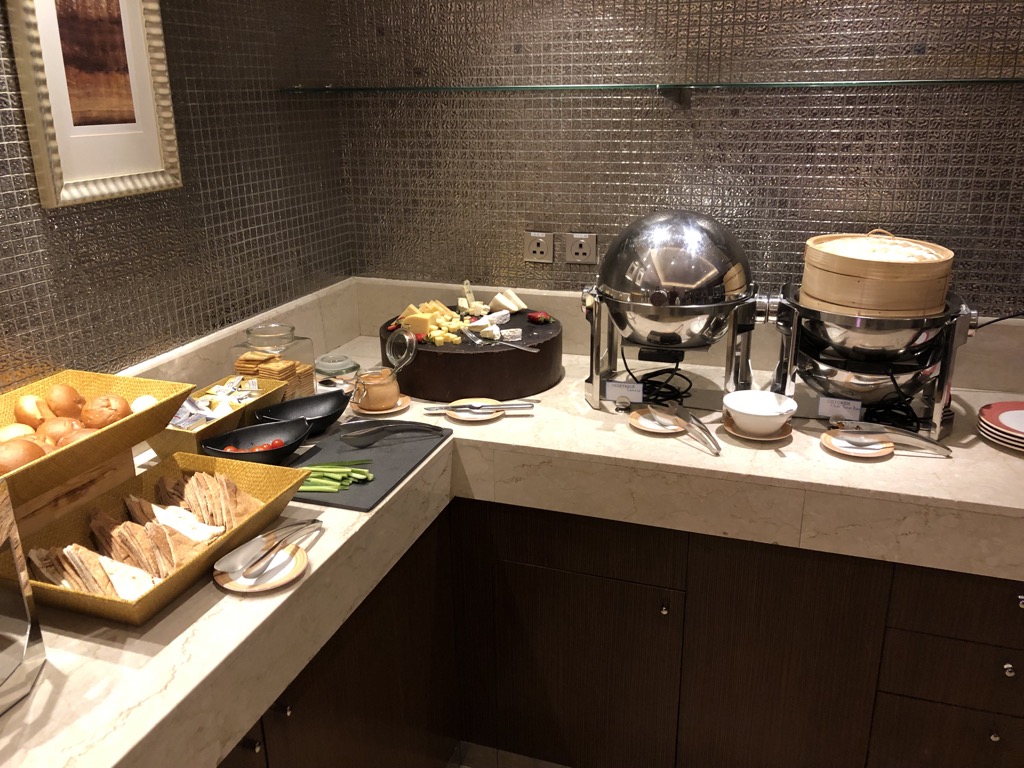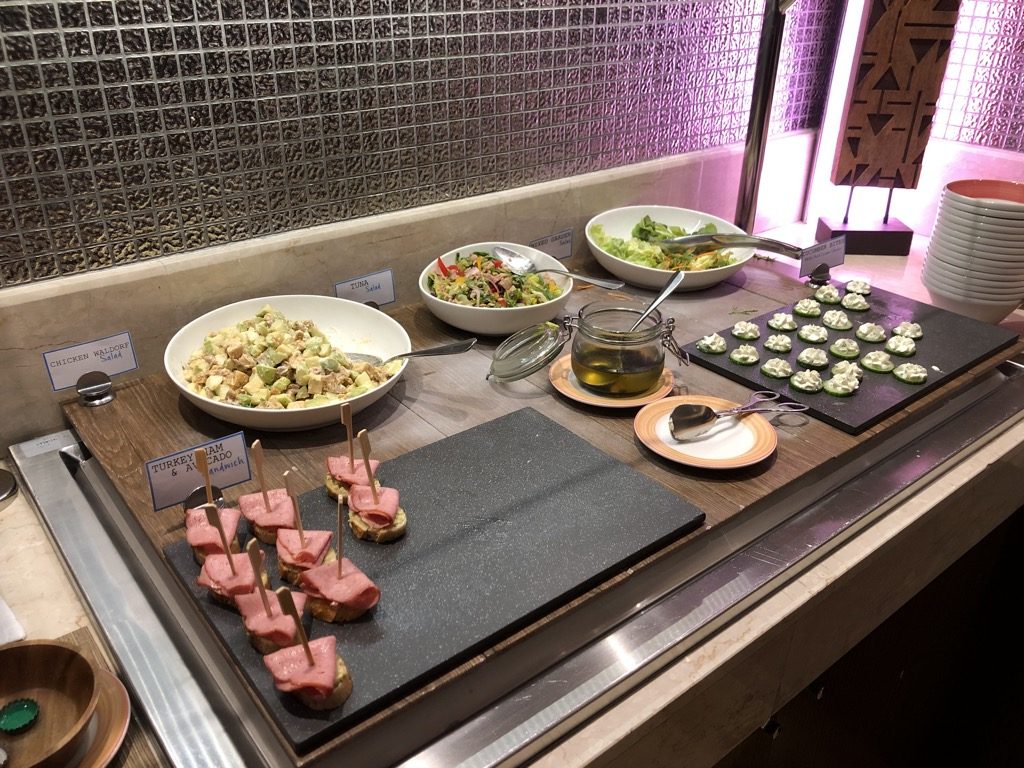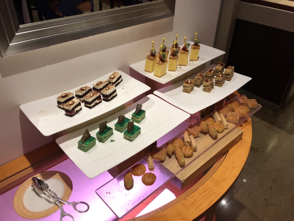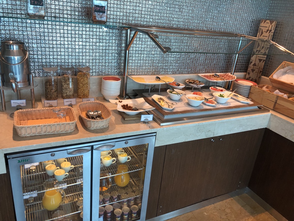 Besonders positiv überrascht war ich von dem Catering, das am Abend in der Executive Lounge vom Hilton Doha angeboten wurde! Im Vergleich zu anderen Hilton Hotels, die ich bisher kennenlernen durfte, gab es hier ein recht üppiges Buffet. Es standen verschiedene kleine Häppchen sowie eine vollwertige Auswahl an Gemüse-, Obst- und Käsesorten und Salat zur Verfügung. Dazu gab es noch mehrere kleine Desserts. Auch warme Gerichte aus der arabischen Küche wurden serviert. Zum Frühstück war hier ein ausgewogenes Buffet aufgebaut – auch ein Grund, warum ich das Frühstück nicht im Restaurant, sondern mit Ausblick in der Executive Lounge vom Hilton Doha einnahm.