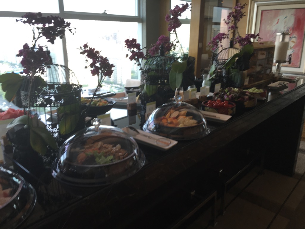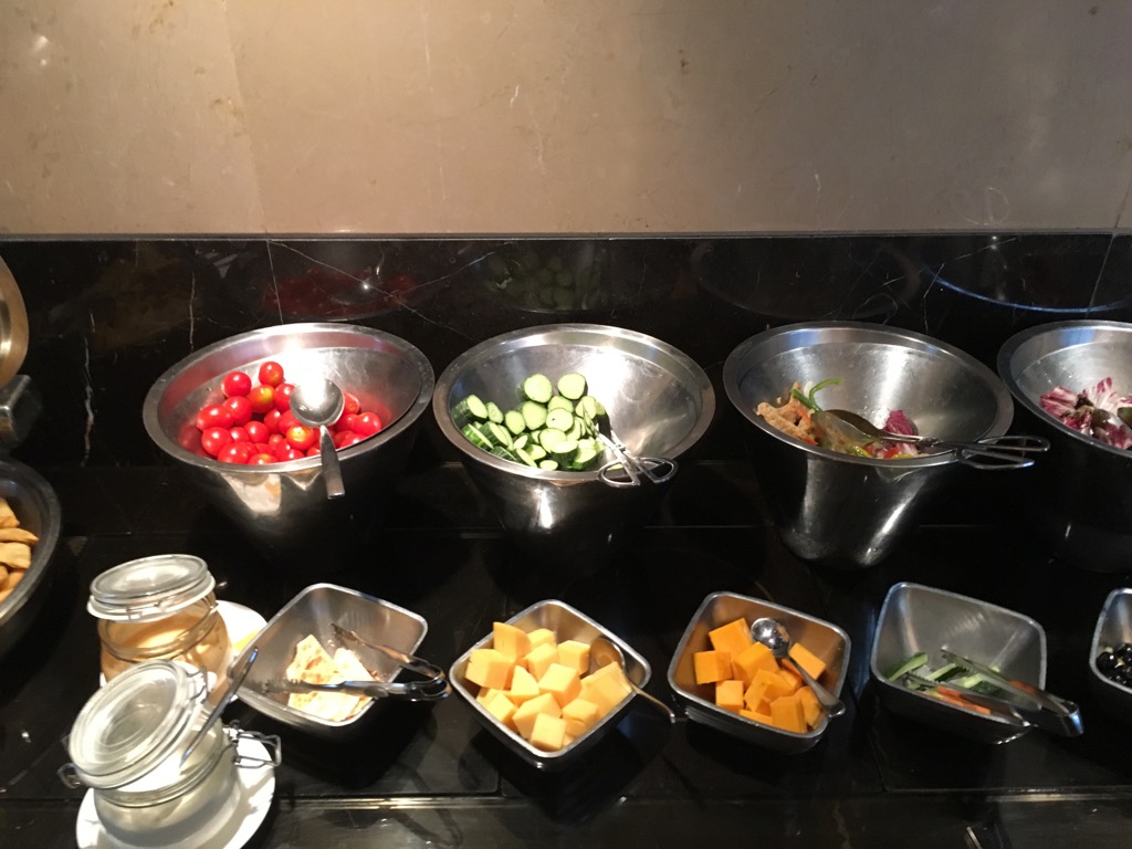 Am nächsten Morgen habe ich das Frühstück ebenfalls in der Executive Lounge eingenommen. Hier wurden auf dem Buffet neben kalten Speisen wie Obst, Wurst, Räucherlachs, Müsli und Salat auch Brot und süßes Gebäck angeboten.