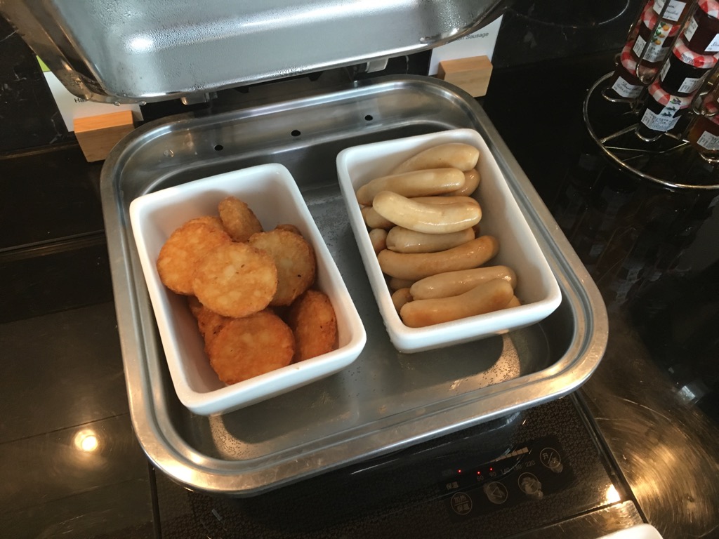 An warmen Speisen standen neben chinesischen Optionen auch Eier, Würstchen, Speck und Hashbrowns auf dem Buffet.