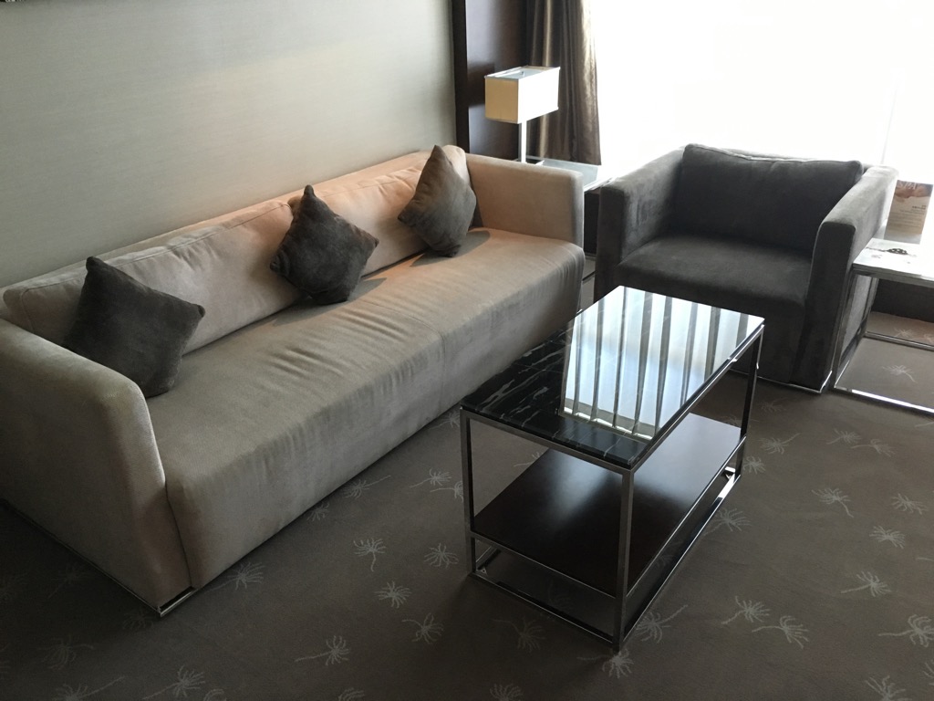 Der Check In selbst war unkompliziert, wenn auch die Englischkenntnisse des Mitarbeiters ein wenig eingeschränkt waren. Er teilte mir mit, dass für mich als Hilton Diamond Member eine Suite auf der 21. Etage vorgesehen sei. Leider war diese noch nicht fertig, was bei meiner frühen Ankunft auch nicht überraschend war. Allerdings konnte ich schon wenige Minuten später, etwa um 11:30 Uhr meine Suite beziehen.