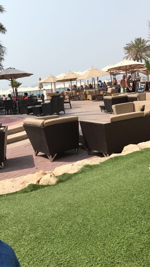 Wir haben mit Mühe zwei Liegen zwischen Pool und Strand bekommen. Leider lagen wir direkt neben einer kleinen Holzhütte, die scheinbar das Shishalager war. So durften wir die komplette Zeit, die wir auf den Liegen verbrachten, kontinuierlich den süßlichen Shishageruch einatmen. Bei 44 Grad Lufttemperatur ziemlich unangenehm.