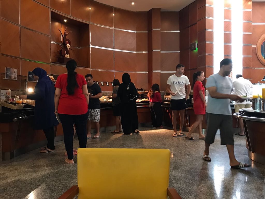 Leider war auch die Lounge sehr voll und glich zeitweise einem Kinderspielplatz. Der Geräuschpegel war nicht ganz so schlimm wie im Frühstücks-Restaurant, aber trotzdem deutlich höher als in normalen Hilton Lounges. Wir vermuten, dass eventuell Lounge-Pässe verkauft wurden. Das Klientel in der Lounge war auch kein lounge-übliches Klientel, sondern (vermutlich) Pauschalreisende mit nasser Badehose und nassen Haaren.