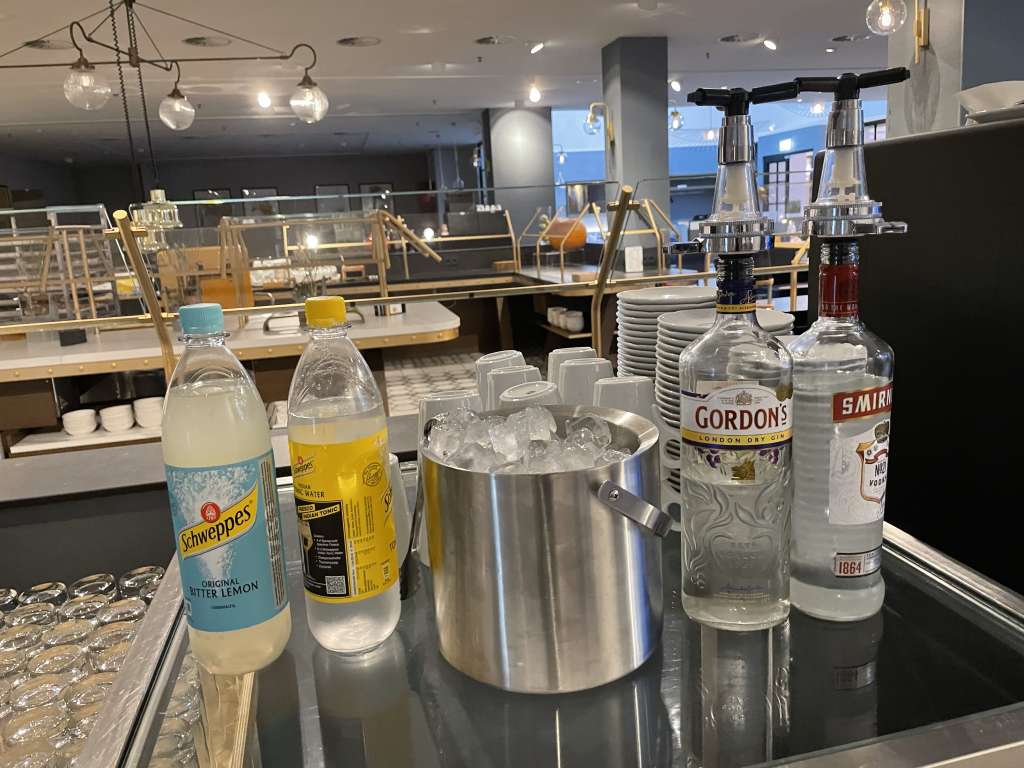 Das Alkoholangebot war stark eingeschränkt. Neben Wein und Bier bestand lediglich die Option eines Longdrinks mit Wodka (Smirnoff) oder Gin (Gordons).
