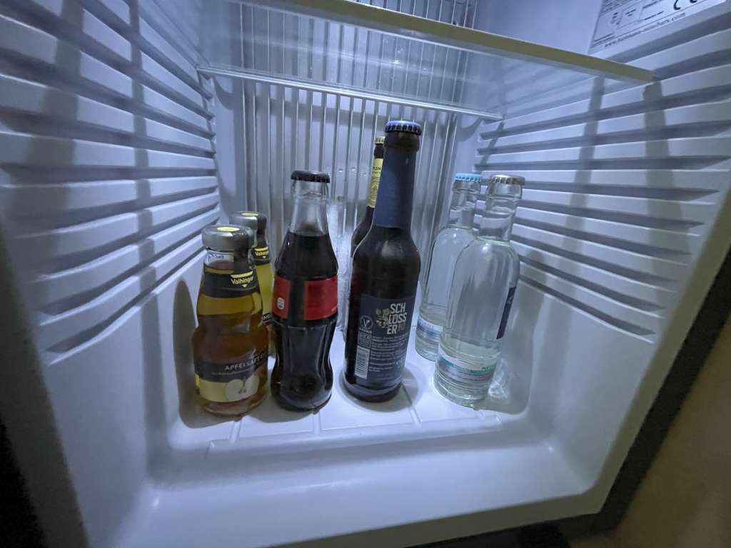 Die Minibar ist zwar weiterhin inklusive, wurde aber nochmals abgespeckt. Die kleinen Snacks sind verschwunden und auch Getränke gibt es nun weniger. Alle anderen Annehmlichkeiten wie Safe und Bügeleisen gehören weiterhin zur Grundausstattung.