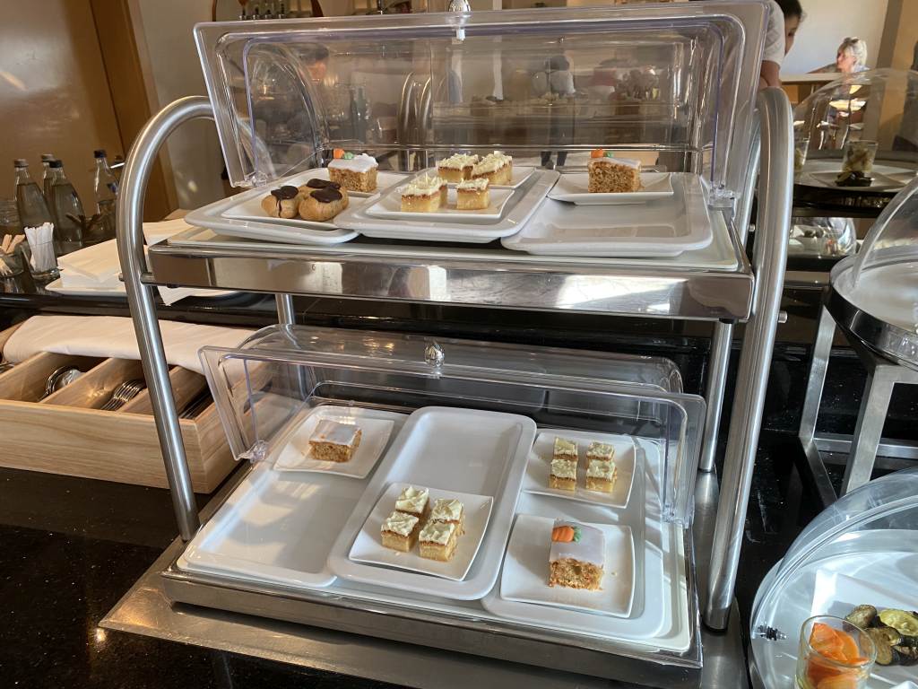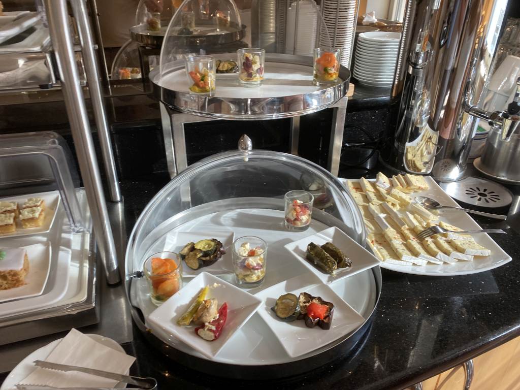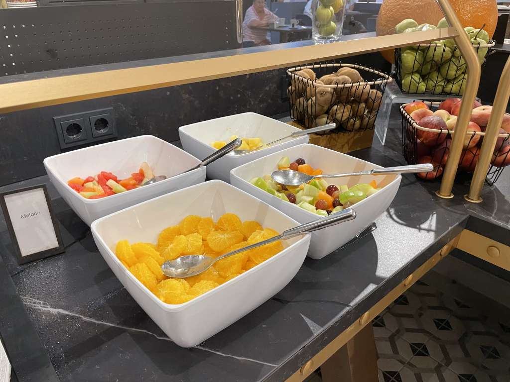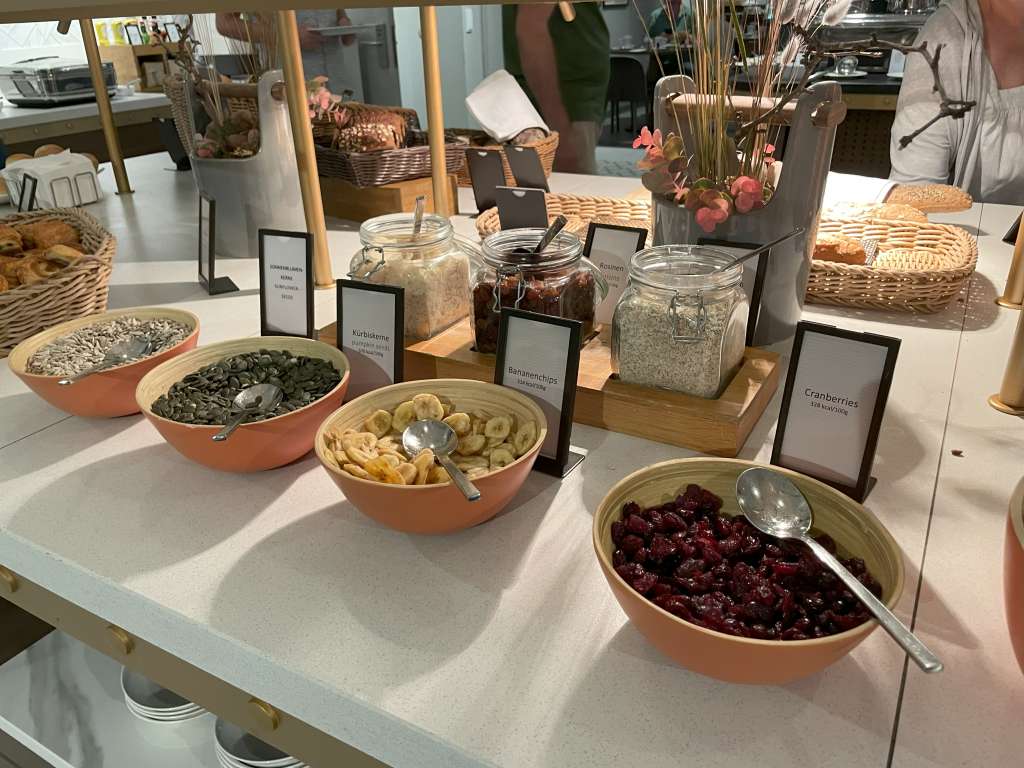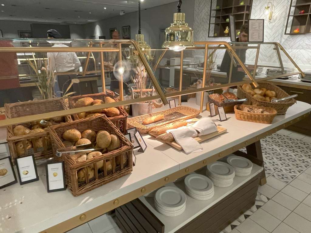 Nicht fehlen dürfen auch warmen Optionen, wie Rührei, gebackene Bohnen und Würstchen. Gesünder geht es dann im Bereich mit den Salaten, Joghurts (abgepackt und offen) und Cerealien zu. Auch eine Auswahl an Antipasti wird weiter geboten.
