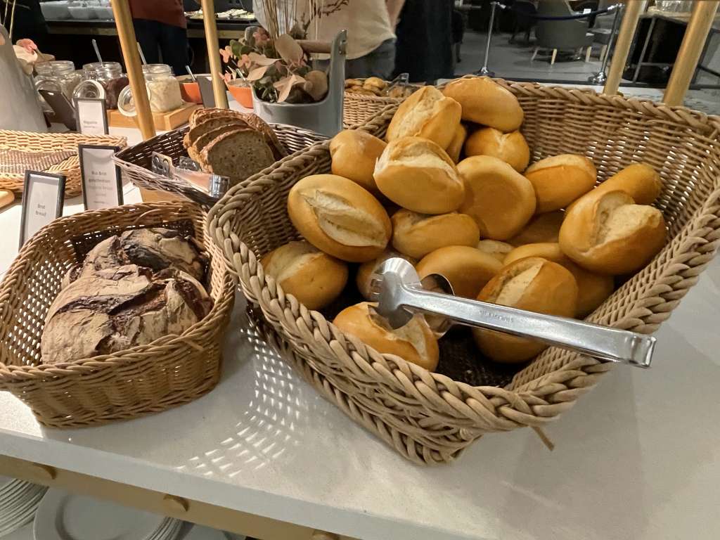 Zum Frühstück wird eine ordentliche Auswahl an Brot und anderen Backwaren angeboten. Dazu gehören Mehrkornbrötchen, Croissants und auch Toast. Als Belag gibt es eine breite Palette von Wurst, Käse, Fisch und süßen Brotaufstrichen.