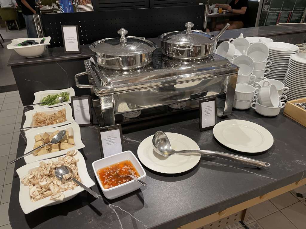 In der Lounge ist das Abendangebot auch nicht mehr das, was es mal war: es wird seit 2024 immer wieder im gleichen Rhythmus gewechselt: ein Abend – Nudelgericht; zwei Abende – Suppen; dann wieder ein Nudelgericht und wieder zwei Abende Suppen. Nudelgerichte sind meist vegetarisch, kein warmes Fleisch oder Fisch mehr angeboten. Früher gab es mindestens zwei Optionen für warme Speisen, jetzt nicht mehr.