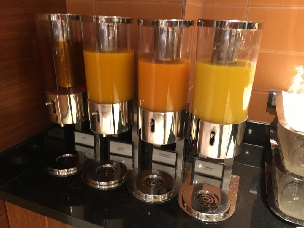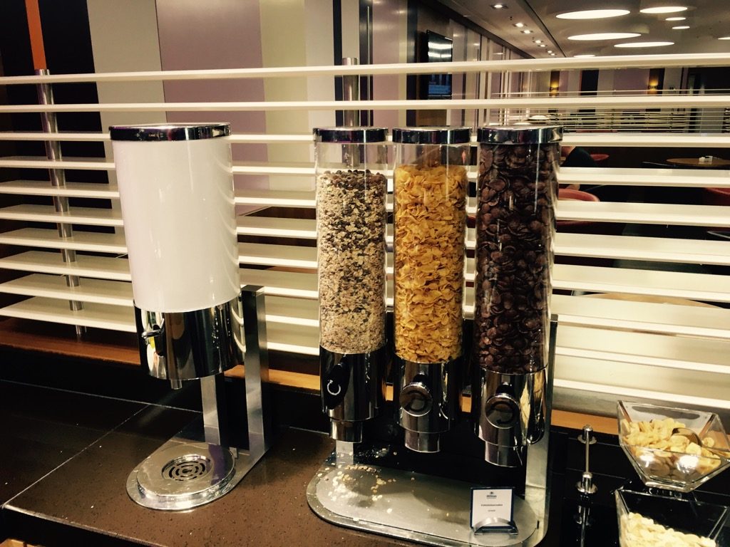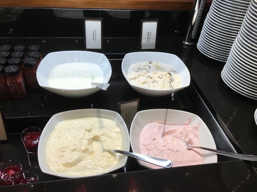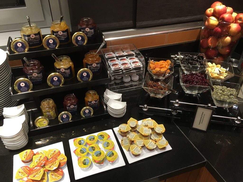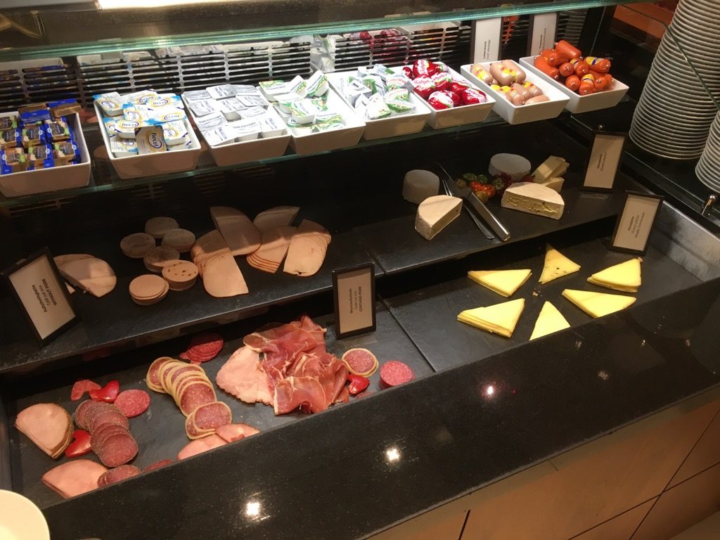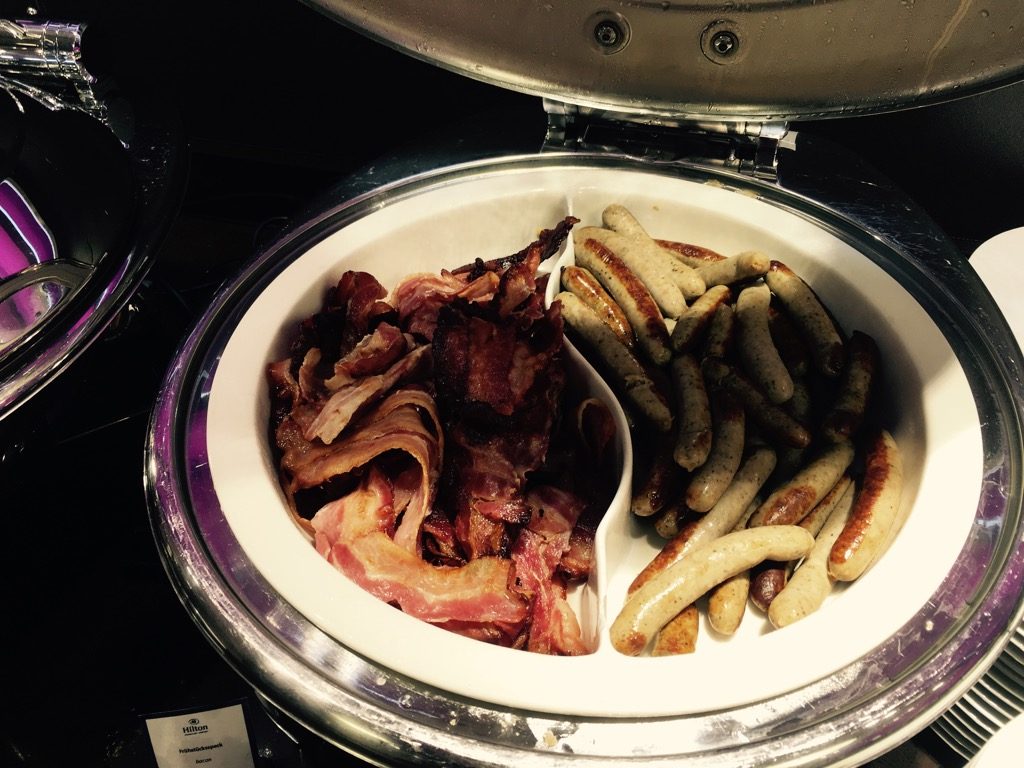 Am Morgen wurde in der Executive Lounge auch Frühstück serviert, welches für ein Lounge Frühstück durchaus gut war. Neben dem üblichen Müsli und den Backwaren, gab es auch eine gute Auswahl an Wurst, Käse und Lachs sowie Früchte und Joghurt. Als warme Gerichte wurden bei unserem Besuch Rührei, gekochte Eier, Speck und Würstchen angeboten. Frische Eierspeisen, wie Omeletts, gab es in der Lounge des Hilton Frankfurt Airport leider nicht.