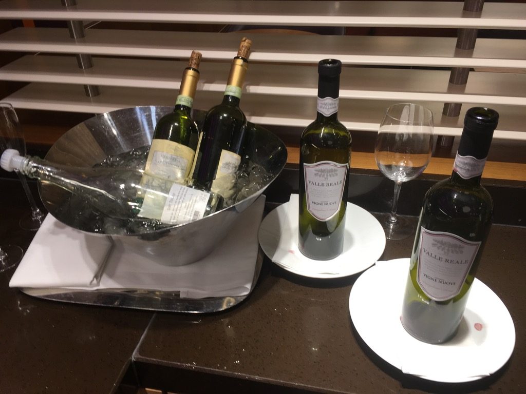 Die Auswahl an alkoholischen Getränken in der Executive Lounge am Abend war grundsätzlich gut, wenn auch nicht überragend. Neben Weinen gab es natürlich auch Bier aus Flaschen sowie 6 Basissorten an Spirituosen. Leider sind besonders die Weine auch ausgegangen.