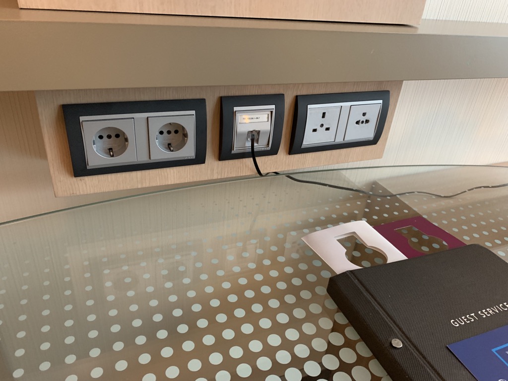 Immer sehr positiv finde ich die vielen Steckdosen und USB Anschlüsse im ganzen Zimmer.