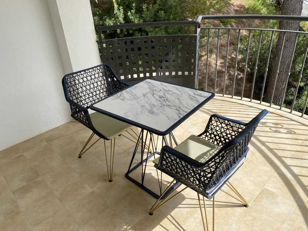 Die Suite teilte sich in drei Räume plus Badezimmer. Nach dem eintreten stand man in einem recht engen Wohnzimmer, was aber alles nötige bot. Eine Couch, TV, Minibar und Kaffeemaschine, eine Kofferablage und den Zugang zum Balkon, der mit Sitzmöbeln ausgestattet war.