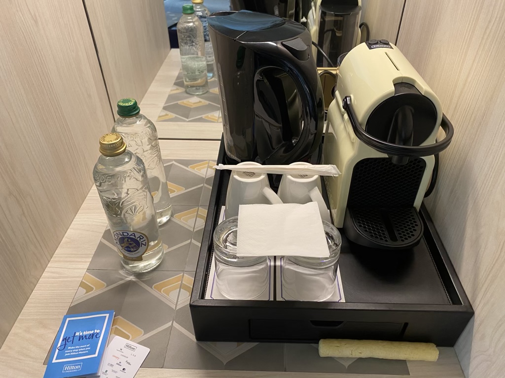 Als Hilton Diamond Member erhält man im Hilton pro Aufenthalt zwei Flaschen Wasser aufs Zimmer. Dies mag im ersten Moment erschrecken, ist aber für die Balearen kein unübliches Vorgehen und Standard. Unsere Flaschen wurden dennoch täglich erneuert.