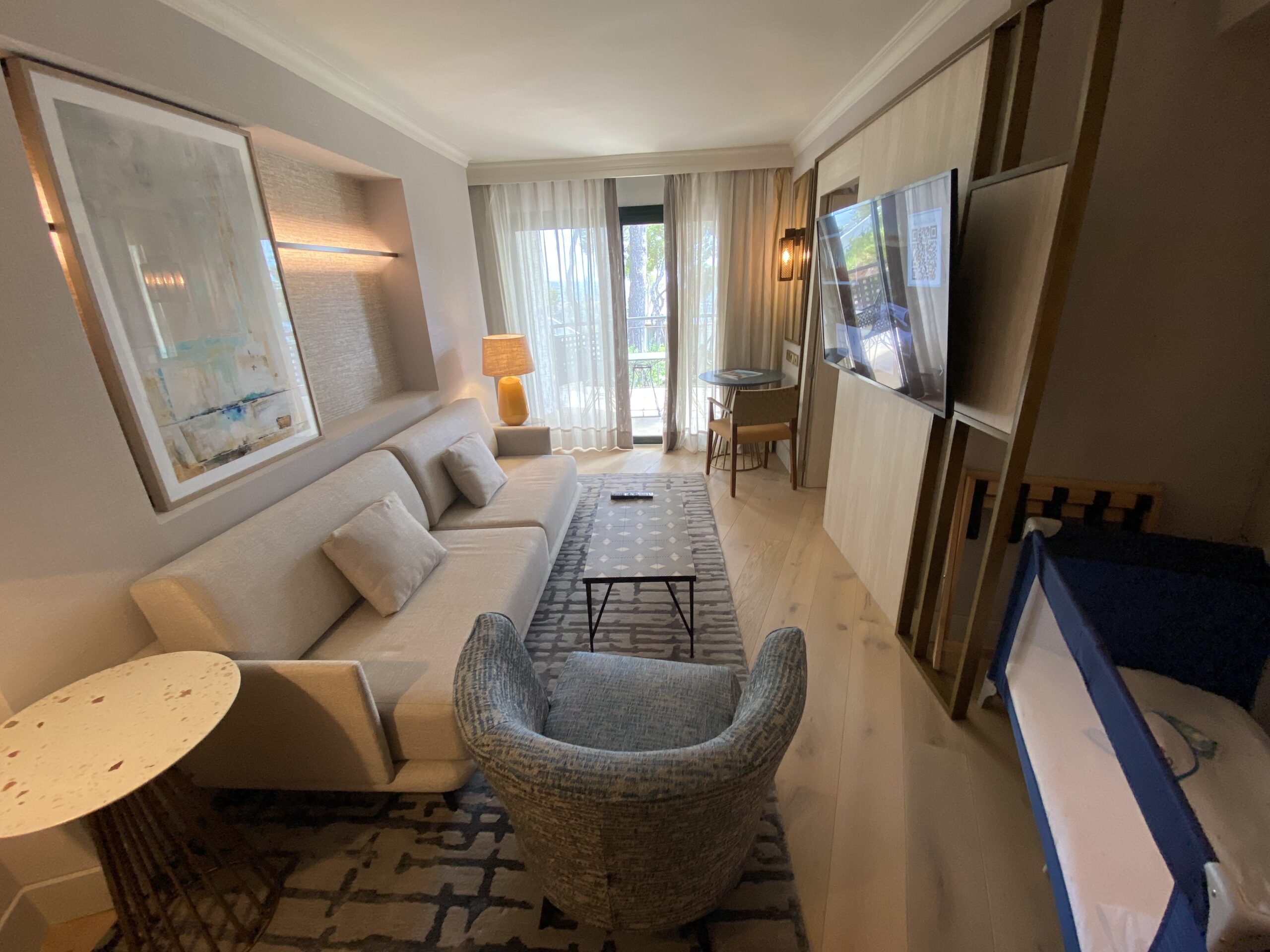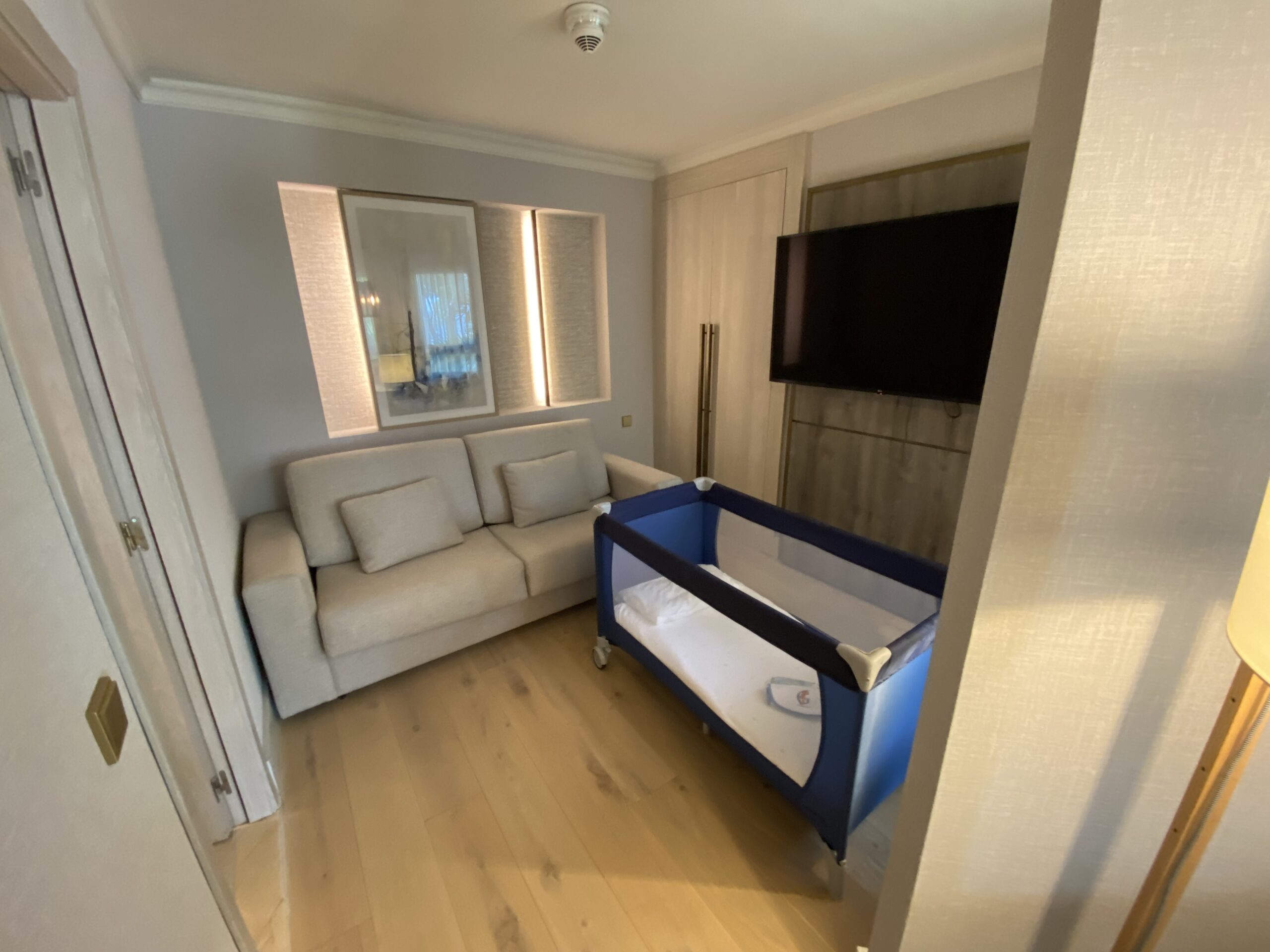 Insgesamt war die Suite in einem super Zustand und schön gestaltet, was aber auch nicht anders zu erwarten ist, denn das Hotel hat erst einen Monat vorher frisch renoviert eröffnet. Das Zimmer hat definitiv Potential, aber es ist unglaublich eng geschnitten. Selbst mit zusammengeklapptem Kinderwagen war nicht mehr Platz als „Laufwege“.