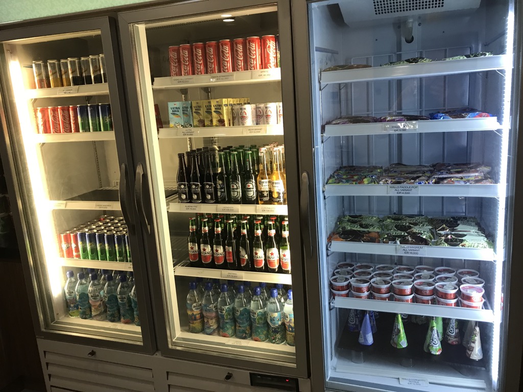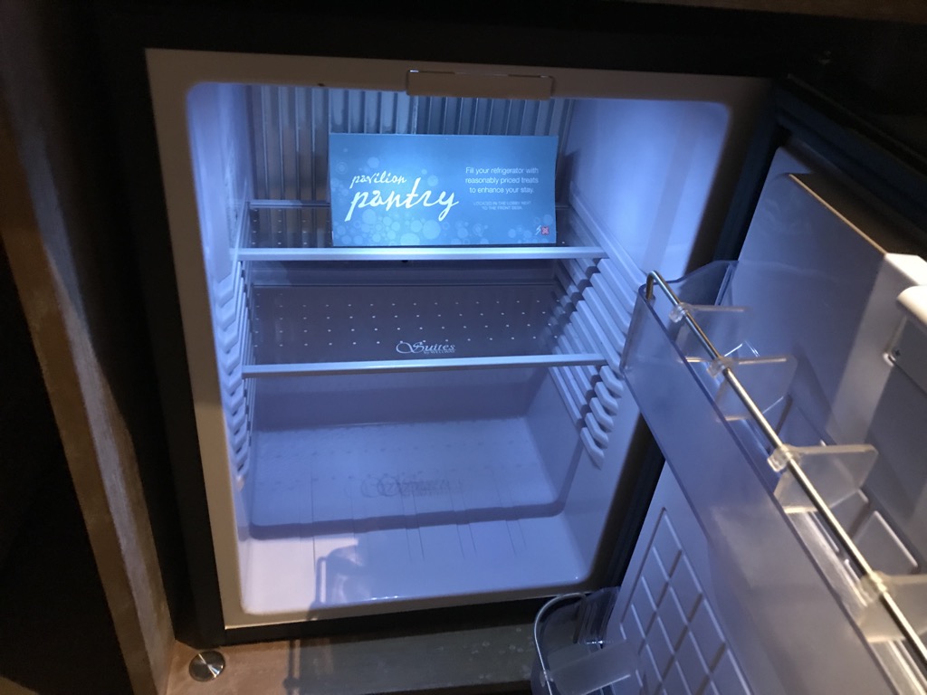 Ein Kühlschrank war auch vorhanden, leider nicht gefüllt. Wir wurden aber beim Check-In darauf aufmerksam gemacht, dass hinter der Rezeption ein kleines 24h Kiosk ist.