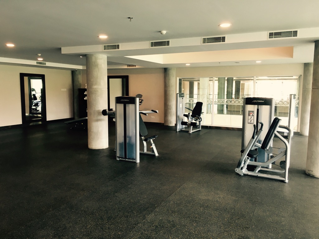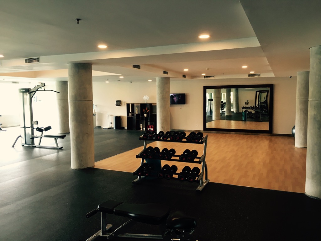 Im dritten Stockwerk befand sich ein großer Raum, der als Fitnessstudio gedacht war. Es waren einige Geräte vorhanden, jedes allerdings nur einmal. Durch den fast schon riesigen Raum mit der Handvoll Geräten wirkte alles etwas verloren. Trotzdem war es schön, dass es so etwas gab. Bei einem Fitnessstudio geht es ja auch nicht unbedingt um die Optik des Raumes.