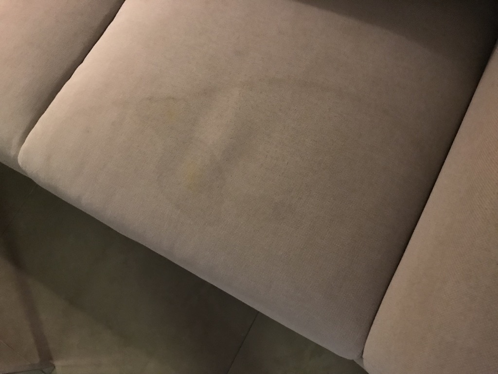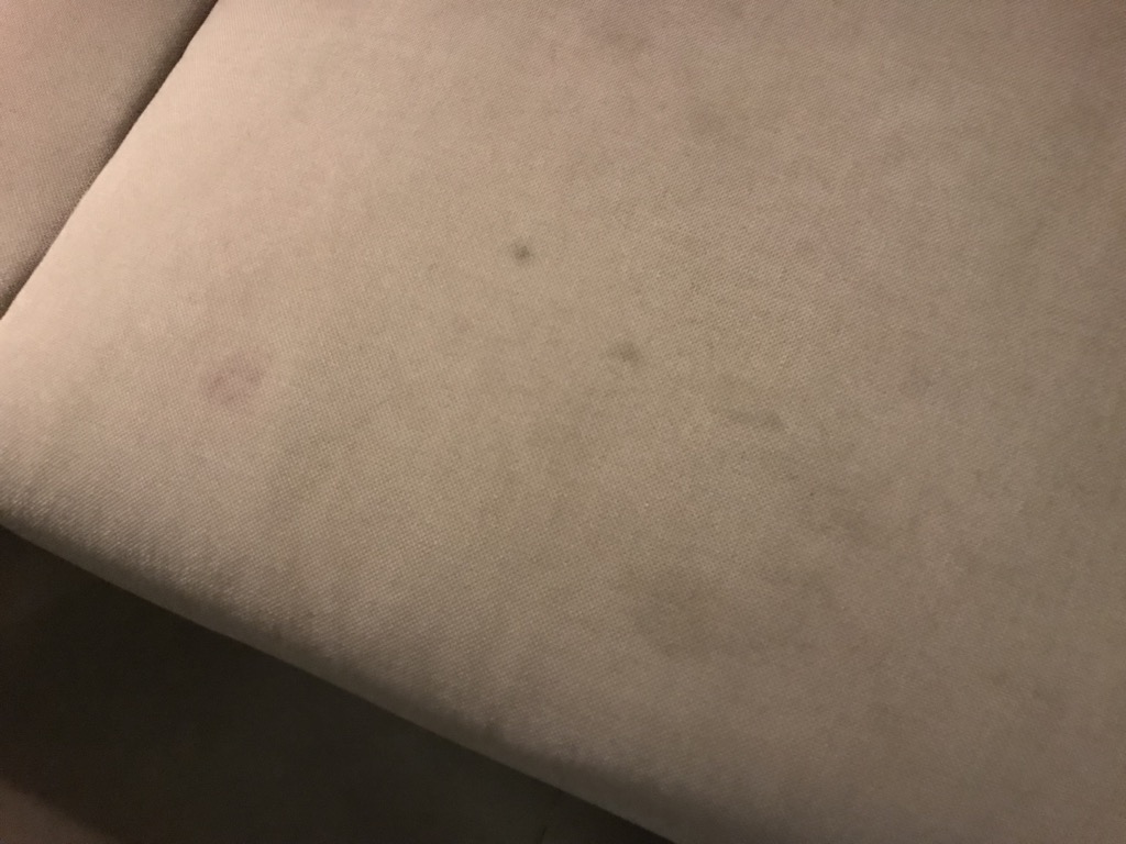 Die Couch im Wohnbereich schien ihre beste Zeit hinter sich gehabt zu haben. Sie hatte sehr viele, seh unappetitliche Flecken.