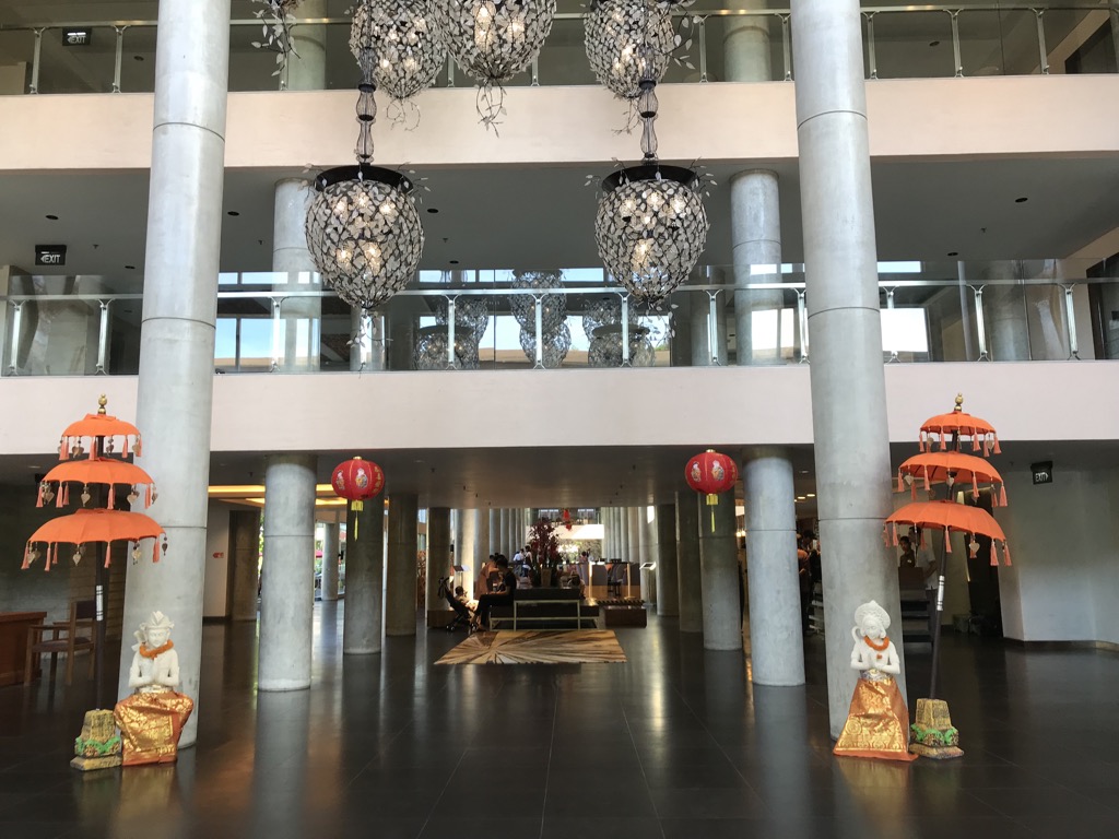 Nach unserer langen Anreise nach Bali und dem Fakt, dass wir erst gegen 22:30 im Hotel sein werden, haben wir uns für die erste Nacht für ein Flughafenhotel entschieden. Zudem ging durch die Umbuchung unser Koffer verloren. Es war unklar, wann er nachkommt, aber bereits in Singapur wurde uns wenig Hoffnung gegeben, dass er in ein Hotel gebracht wird. Auch deshalb war der Standort perfekt, denn wir sollten sobald die Benachrichtigung kommt, dass der Koffer angekommen ist, an den Flughafen kommen.