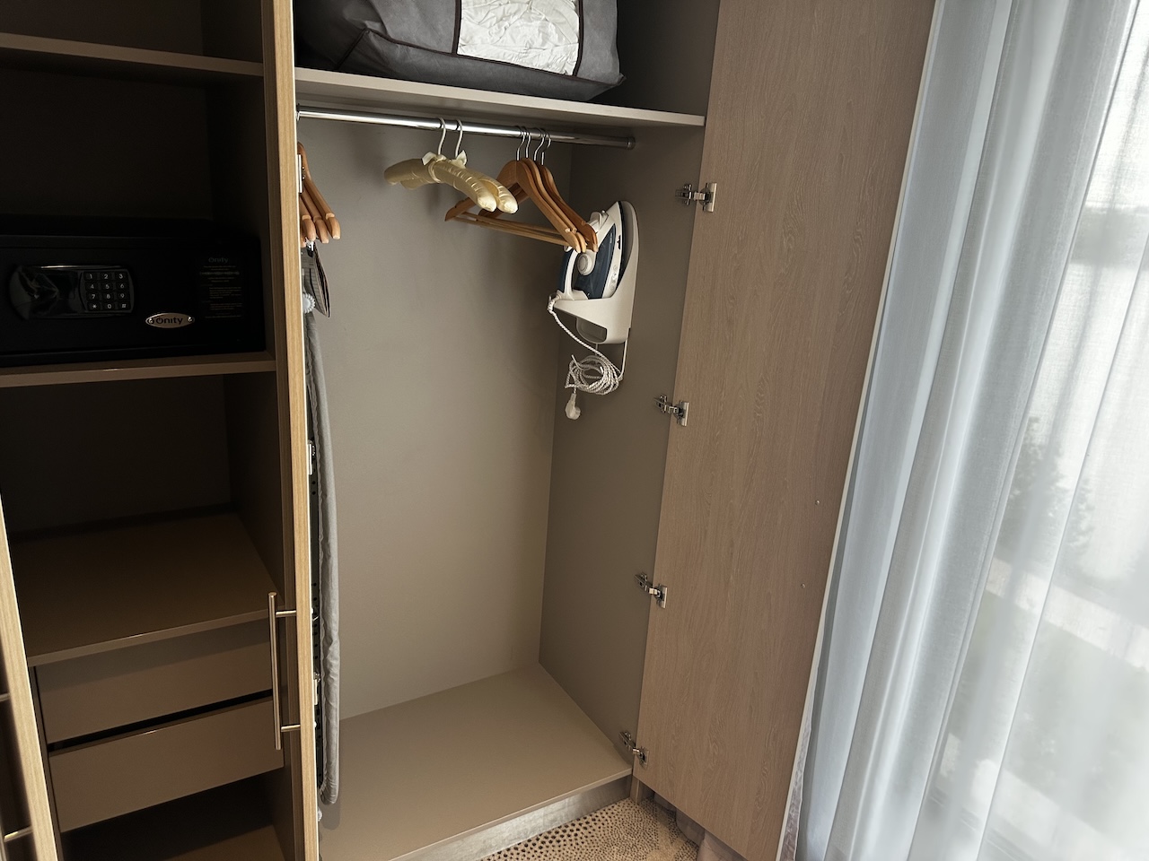 Im Schlafzimmer ist nicht allzu viel Platz, aber dadurch das Kleidung und Gepäck an anderer Stelle untergebracht werden können, ist das absolut in Ordnung.