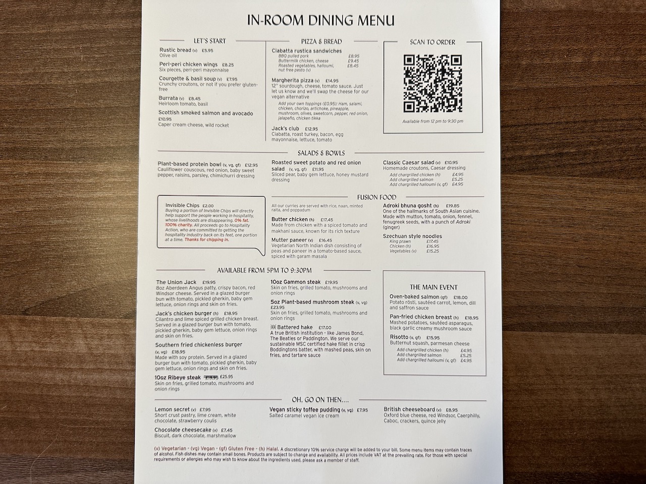 Typisch englische und internationale Küche kann auch über den Room Service bestellt werden.