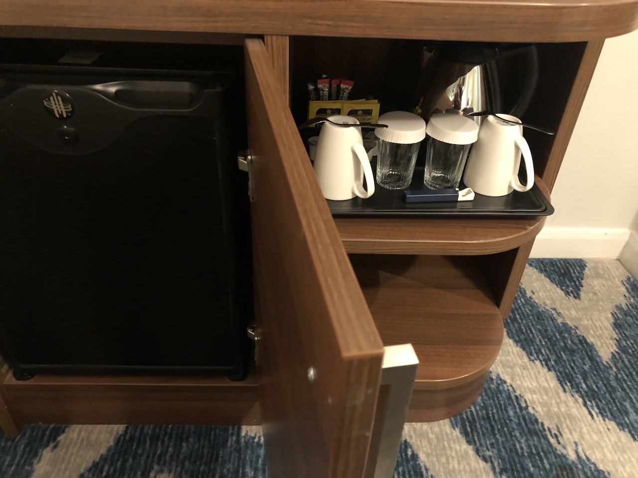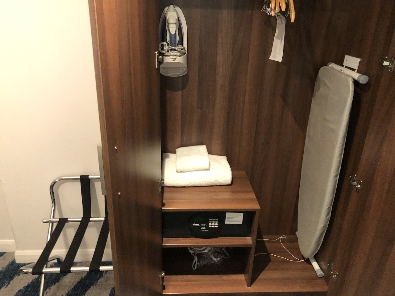 Viel Platz für Gepäck bleibt nicht, dafür sind Annehmlichkeiten wie Safe, Bügeleisen, Kühlschrank, Wasserkocher usw. vorhanden.
