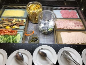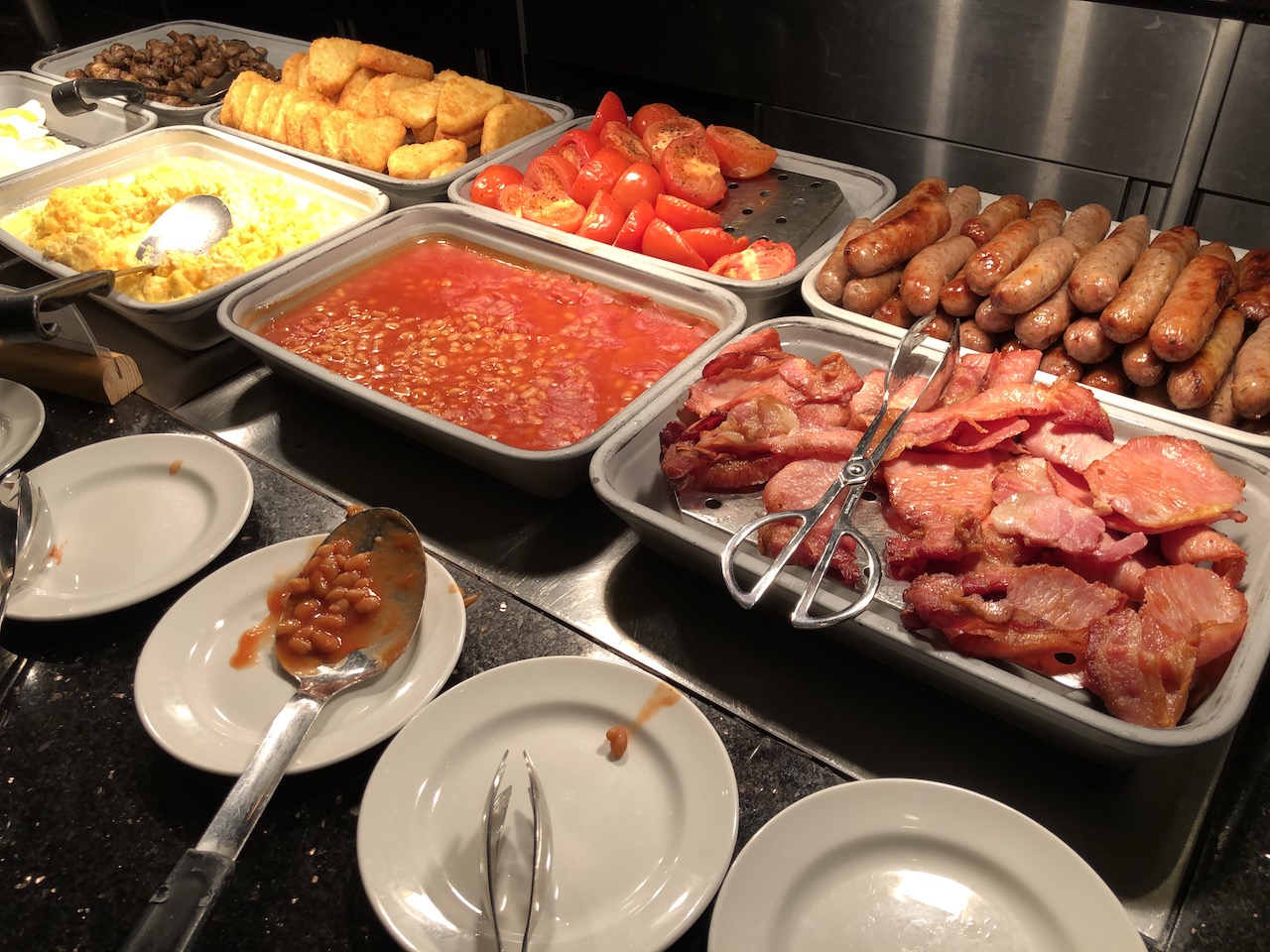Im Restaurant wird morgens das typisch britische aber recht üppige Frühstücksbuffet aufgefahren.