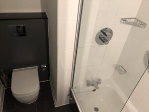 Auch das Bad ist nicht besonders groß, aber dennoch ausreichend. Manche Zimmer haben Duschen, in einigen steht eine Badewanne.