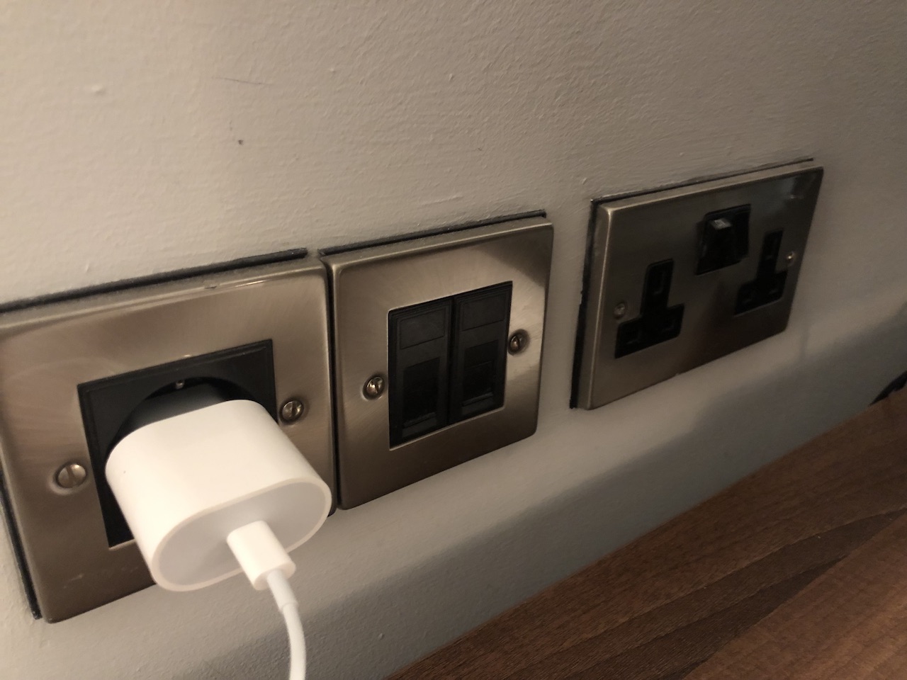 Es gibt auch Euro-Steckdosen und USB-Anschlüsse was gerade in einem Flughafenhotel zum Standard gehören sollte.