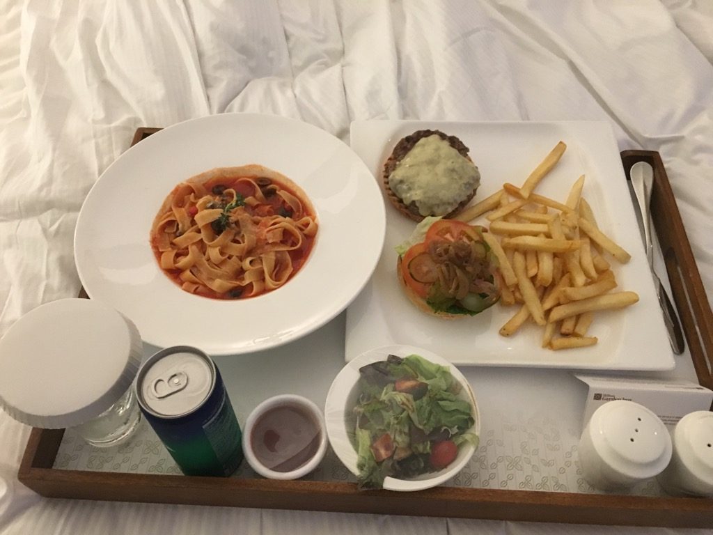 Das Hotel verfügte noch über ein kleines Restaurant, von dem man sich auch ohne Aufpreis Speisen und Getränke aufs Zimmer bestellen konnte. Wir waren beide ziemlich platt, weswegen wir dieses Angebot nutzten. Die Speisen waren preislich absolut in Ordnung und haben zu unserem Erstaunen wunderbar geschmeckt.