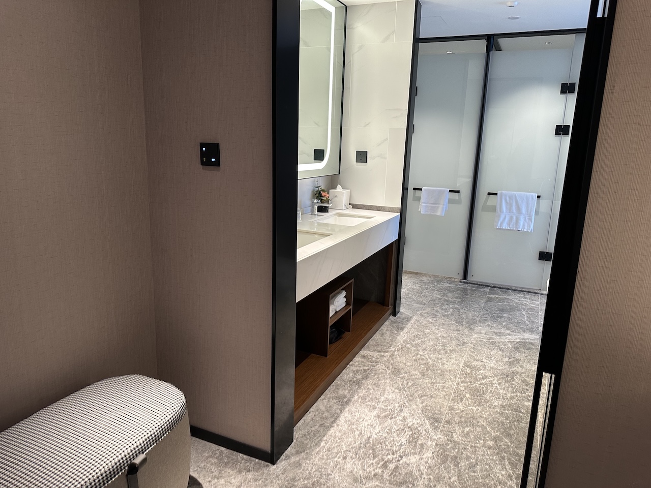 Im Zimmer waren gleich zwei Sofas, ein Schreibtisch, diverse Ablagen und ein kleinerer Bereich für das Gepäck.