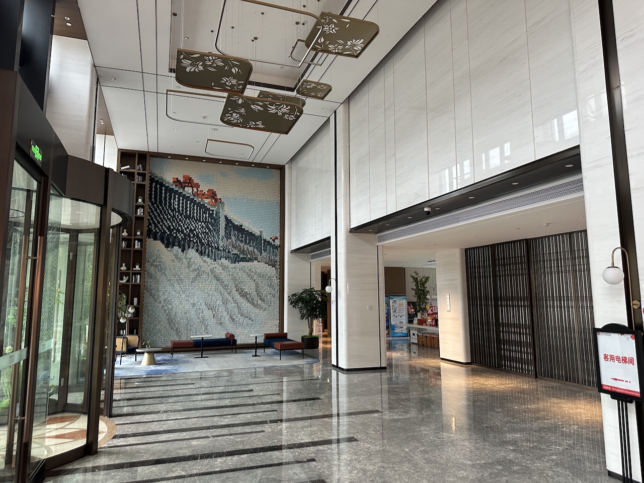 Die Lobby und die öffentlichen Bereiche sind modern eingerichtet, man merkt, dass das Hotel noch nicht sehr alt ist. Neben der Rezeption findet man auch einen kleinen Shop, Getränkespender und einen Aufenthaltsbereich.