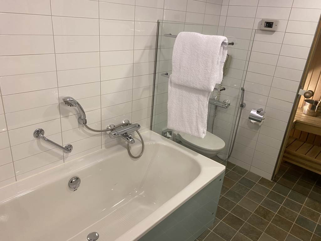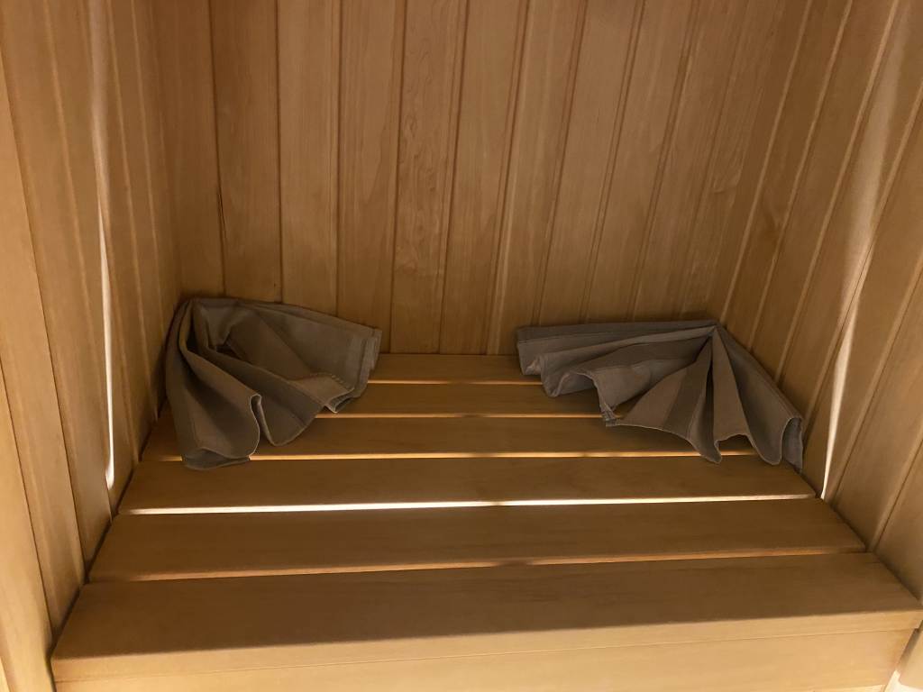 Das Hilton am Flughafen hat Zimmer-Kategorien, die eine private Sauna auf dem Zimmer haben. Und da uns der Gang in die Sauna seit mehr als 1 1/2 Jahren durch unsere beiden Töchter erschwert wird, war das die optimale Gelegenheit.