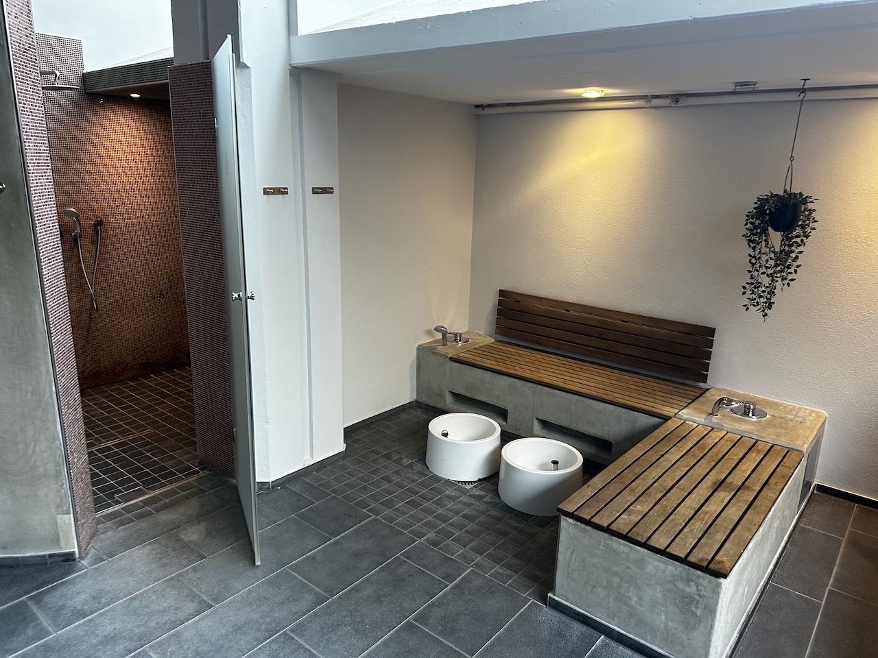 Die Saunen sind täglich von 16-22 Uhr eingeschaltet. Neben den Saunen ist ein Aufenthaltsbereich und Duschen, es gibt auch einen Umkleidebereich mit Spinden.
