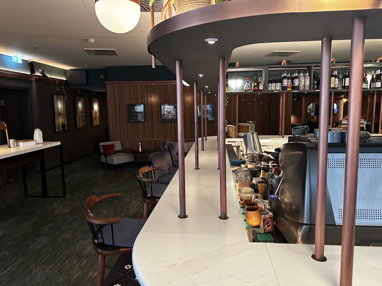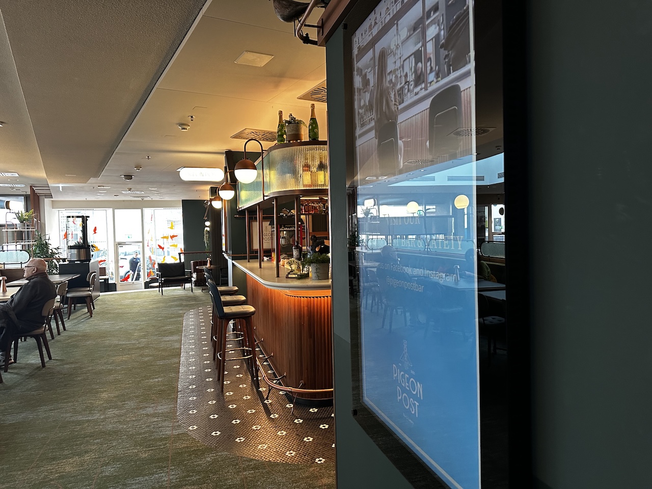 Gegenüber der Rezeption ist die „Pigeon Post Bar & Eatery“, eine klassische Hotelbar mit Café- und Restaurantbereich.