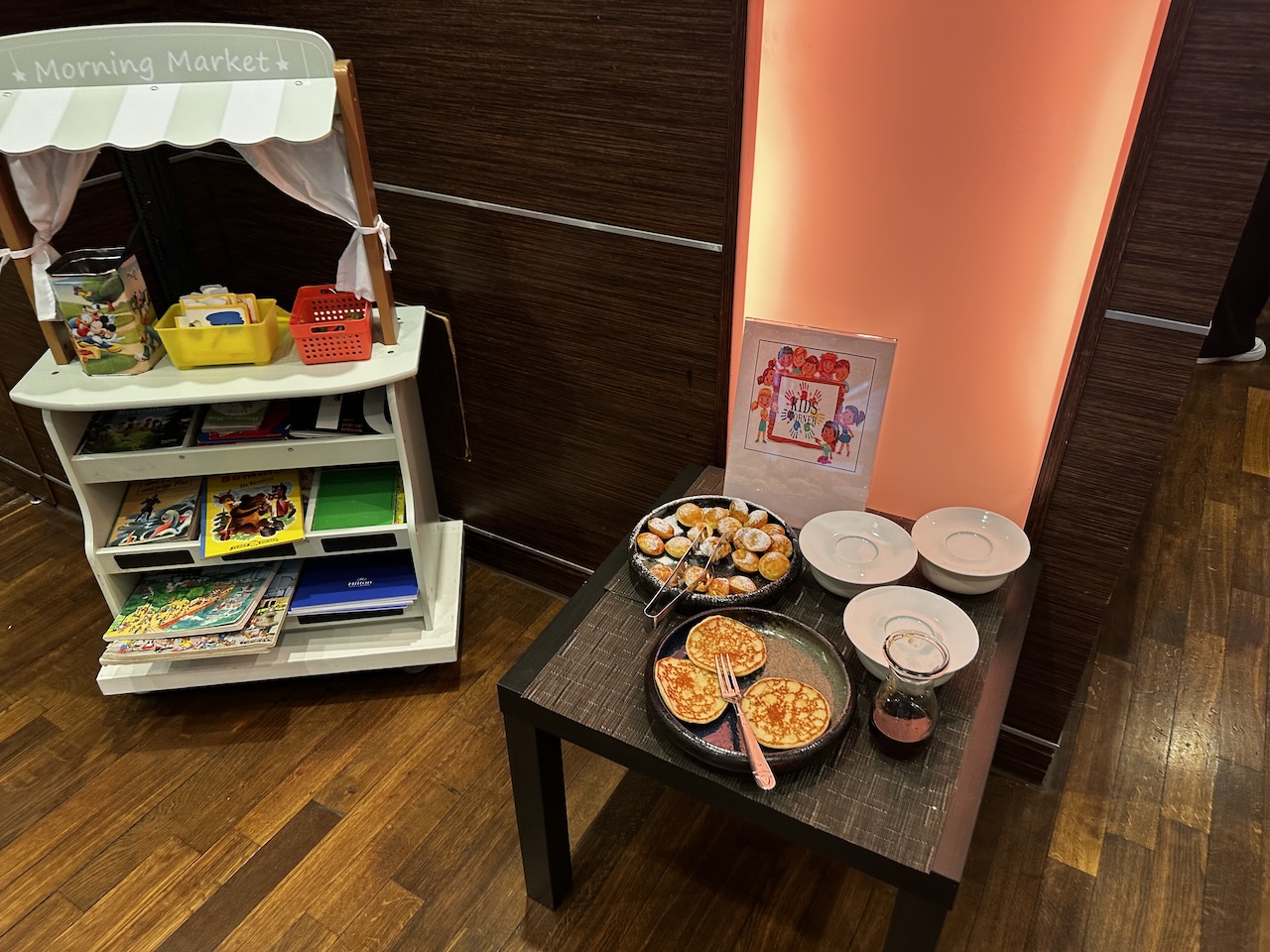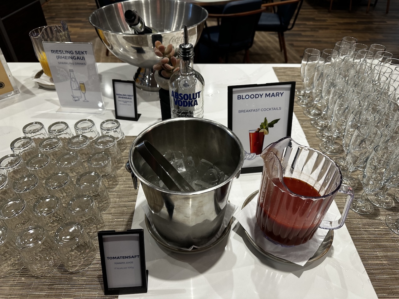 Säfte und Heißgetränke stehen auch zu Selbstbedienung, im Sortiment sind auch Sekt und Bloody Mary. Für die kleinen Gäste gab es auch ein paar Kleinigkeiten an einem separaten Stand.