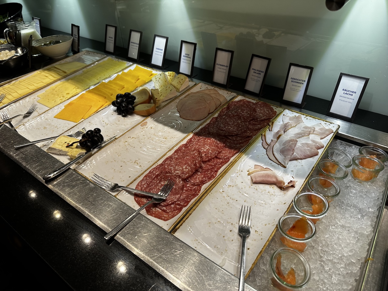 An einer benachbarten Theke waren auch warme Optionen verfügbar, leider wurden heute aber keine individuellen Eierspeisen zubereitet.